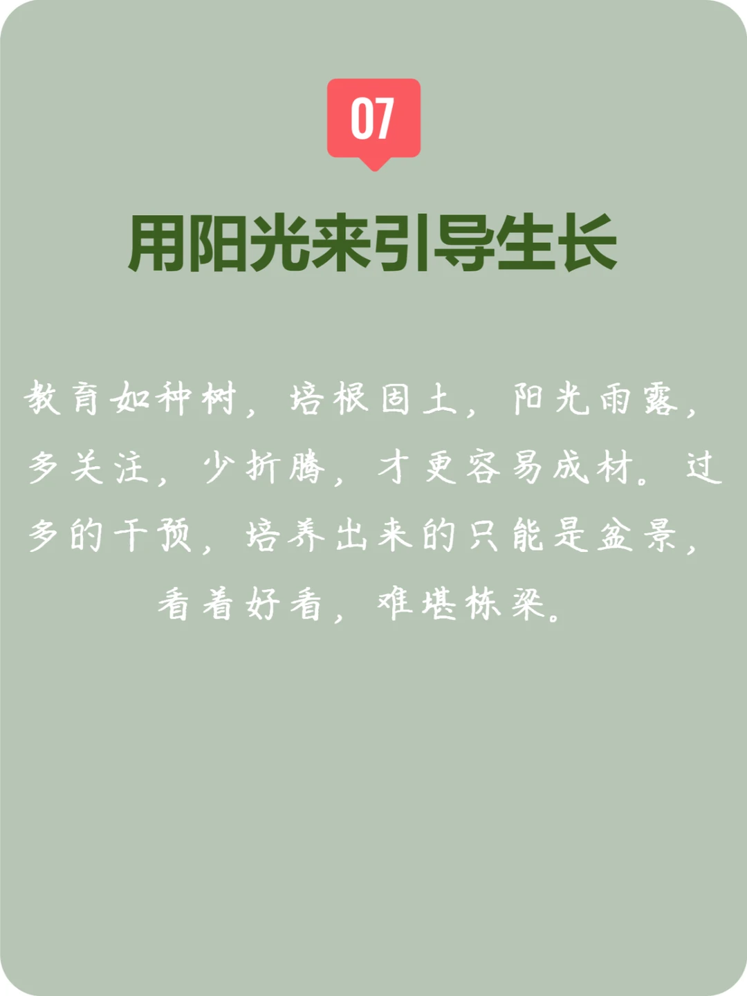 教育如种树,培根固土,阳光雨露,多关注,少折腾,才更容易成材。过多的干预,培养出来的只能是盆景,看着好看,难堪栋梁。