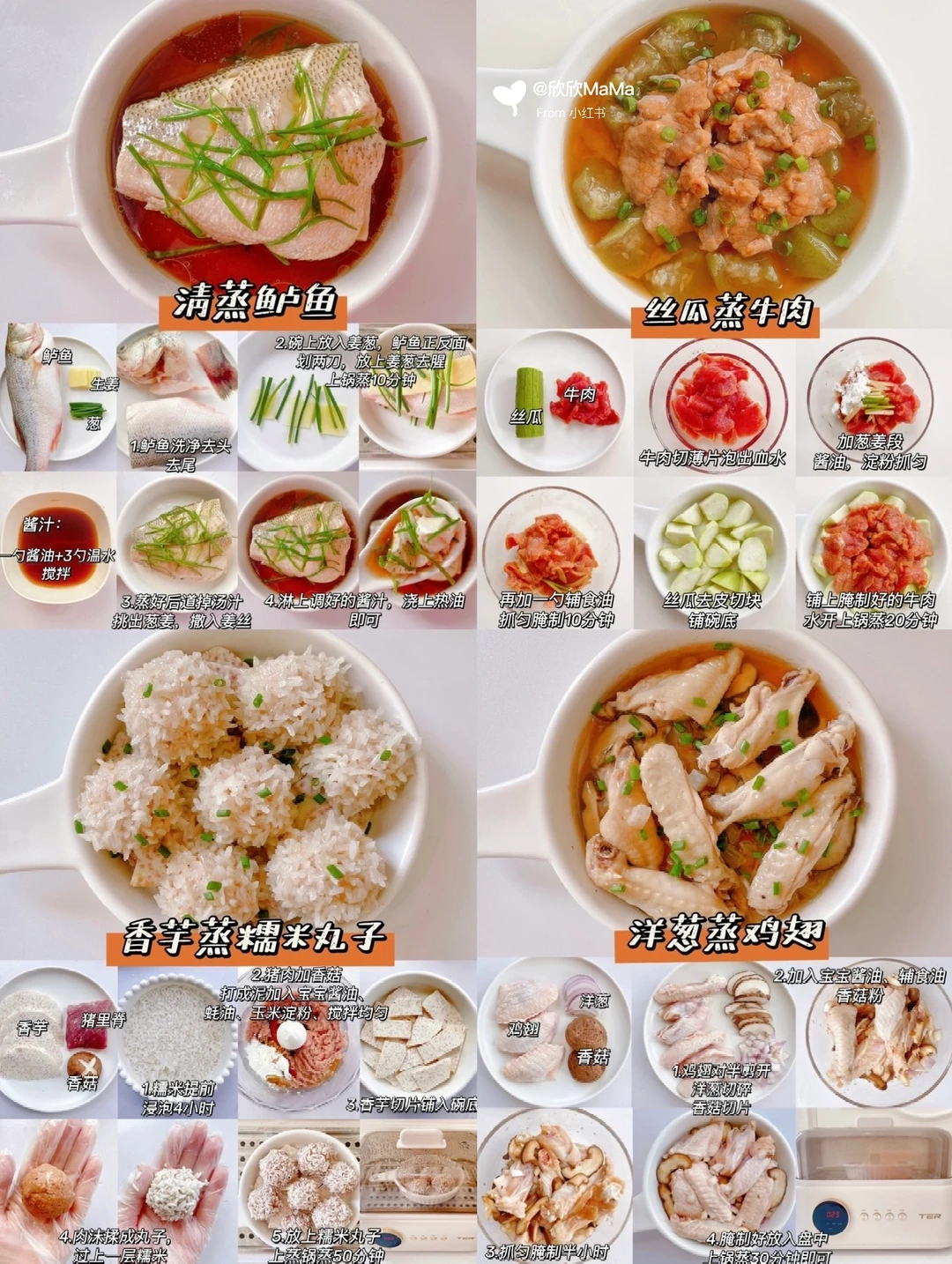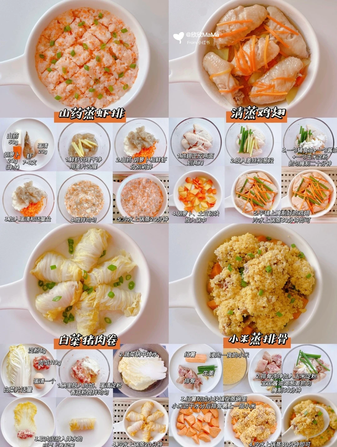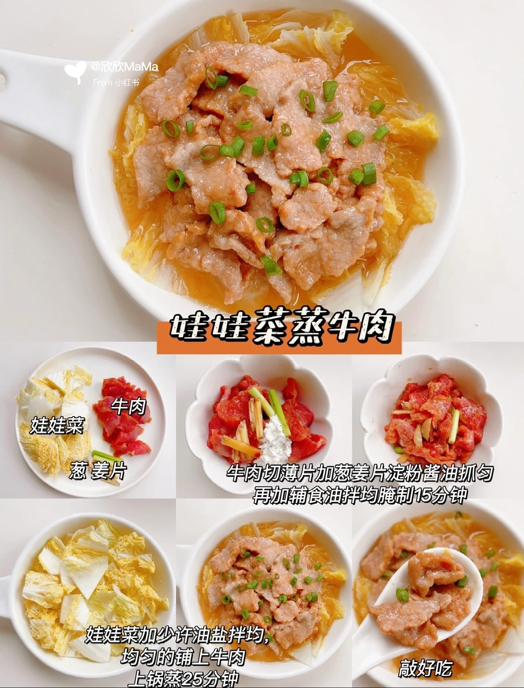 今天分享12款简单又营养的蒸菜食谱, 如果宝宝没有胃口,可以安排蒸菜,营养美味,蒸出来的口感都是非常鲜嫩的,肉肉软烂,汤汁拌饭绝绝子!厨房小白也能轻松上手 - ✅丝瓜蒸牛肉 ✅南瓜蒸排骨 ✅洋葱蒸鸡翅 ✅娃娃菜蒸鸡腿肉 ✅菌菇蒸鸡翅 ✅香芋蒸糯米丸子 ✅山药鲜虾排 ✅清蒸鸡翅 ✅白菜猪肉卷 ✅小米蒸排骨 ✅娃娃菜蒸牛肉 ✅丝瓜蒸牛肉 - 详细做法👀图2-图7