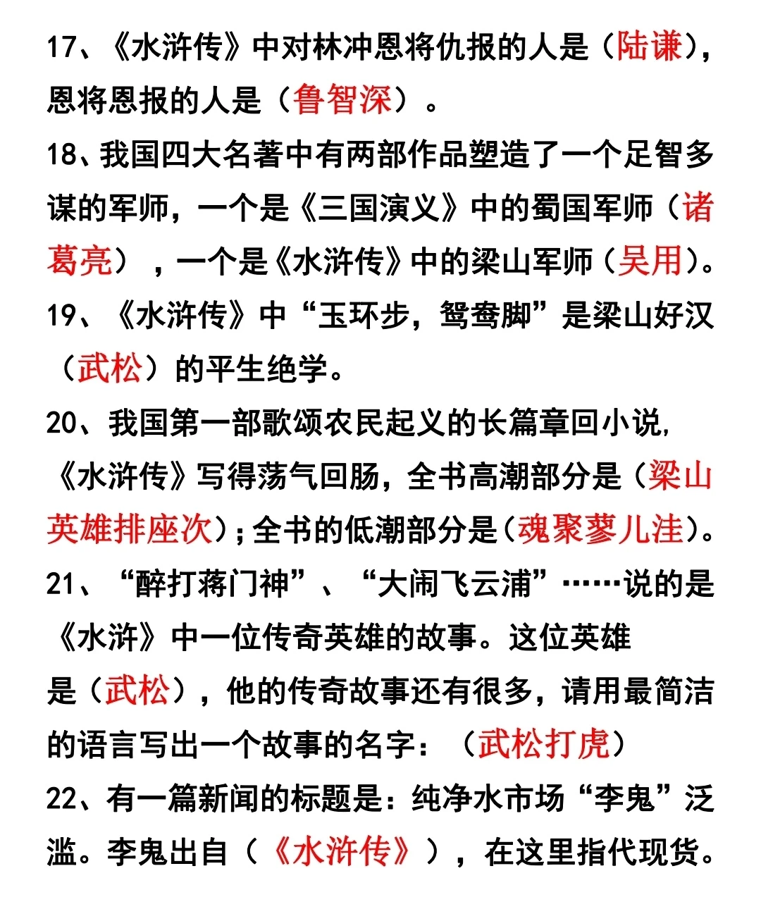 不懂就问有问必答语文文学常识 初中语文 初中语文积累每天积累一点点 《水浒传》相对来说题目量少一些,简单一点。