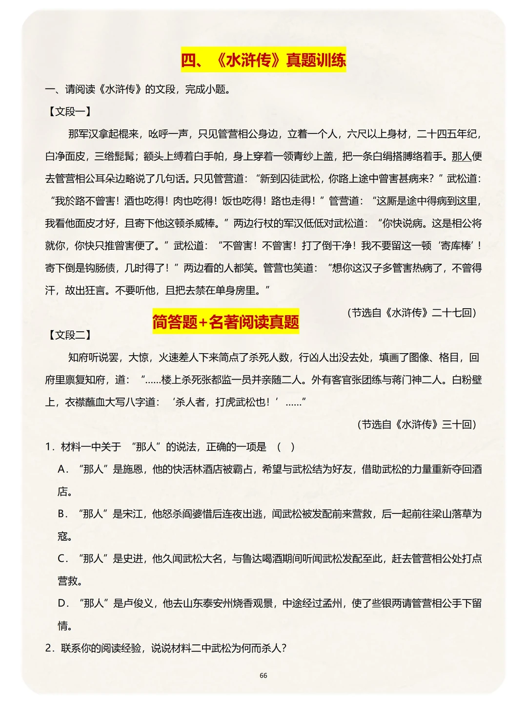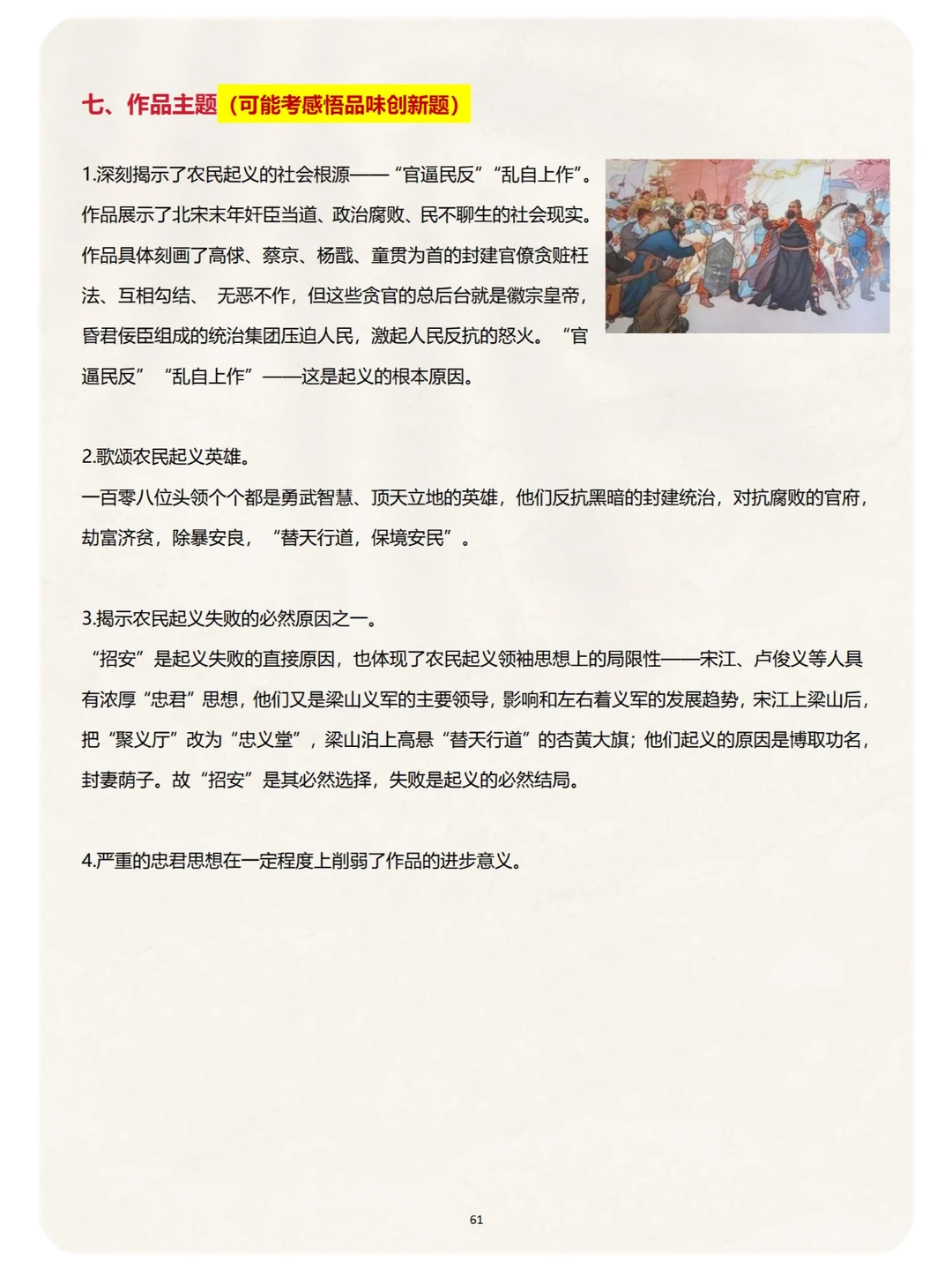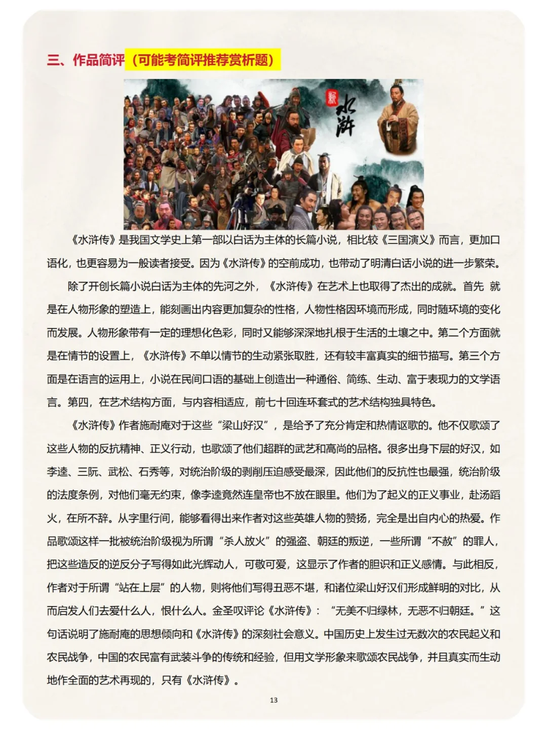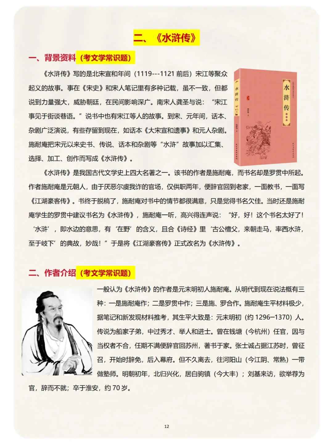 《水浒传》最常考的是主要人物的核心事件和形象,一定要记忆重点人物的性格和每回内容概要。