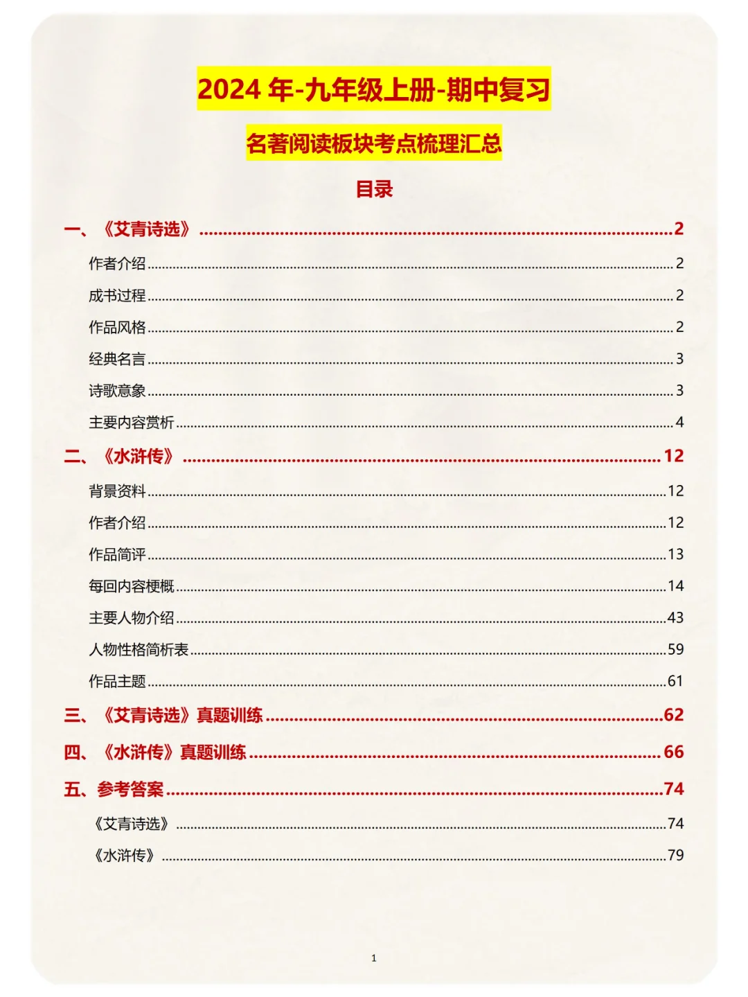 🔥九年级上册语文期中考试,名著阅读板块如何复习?