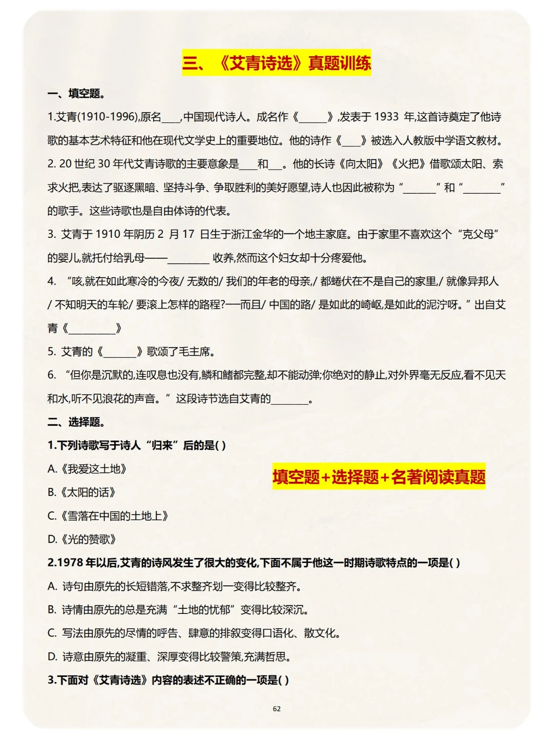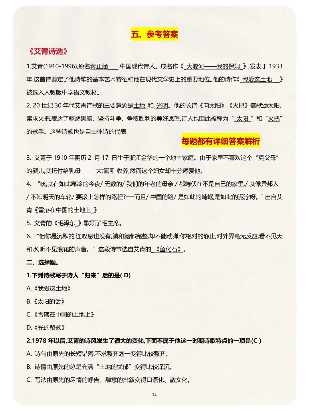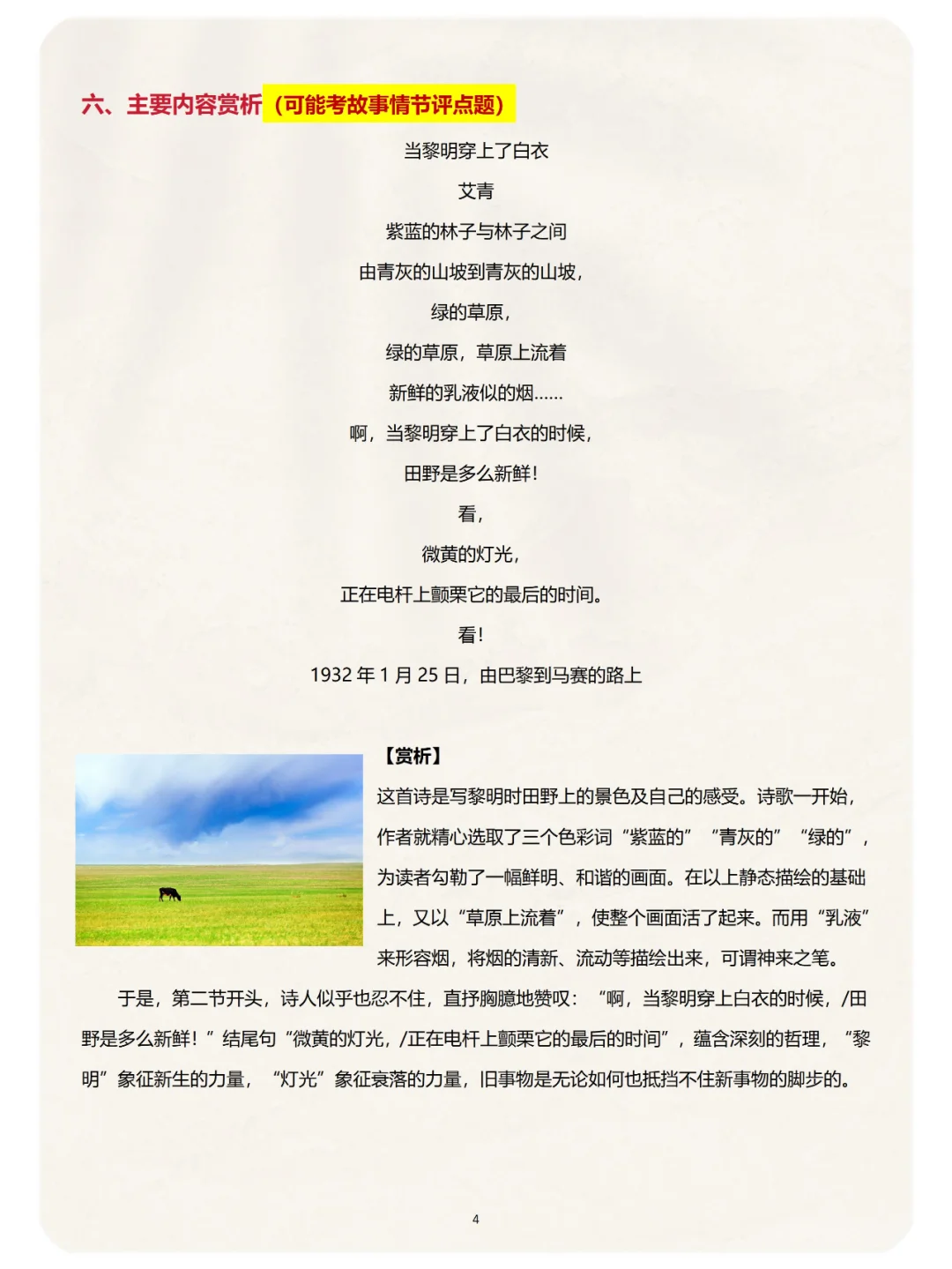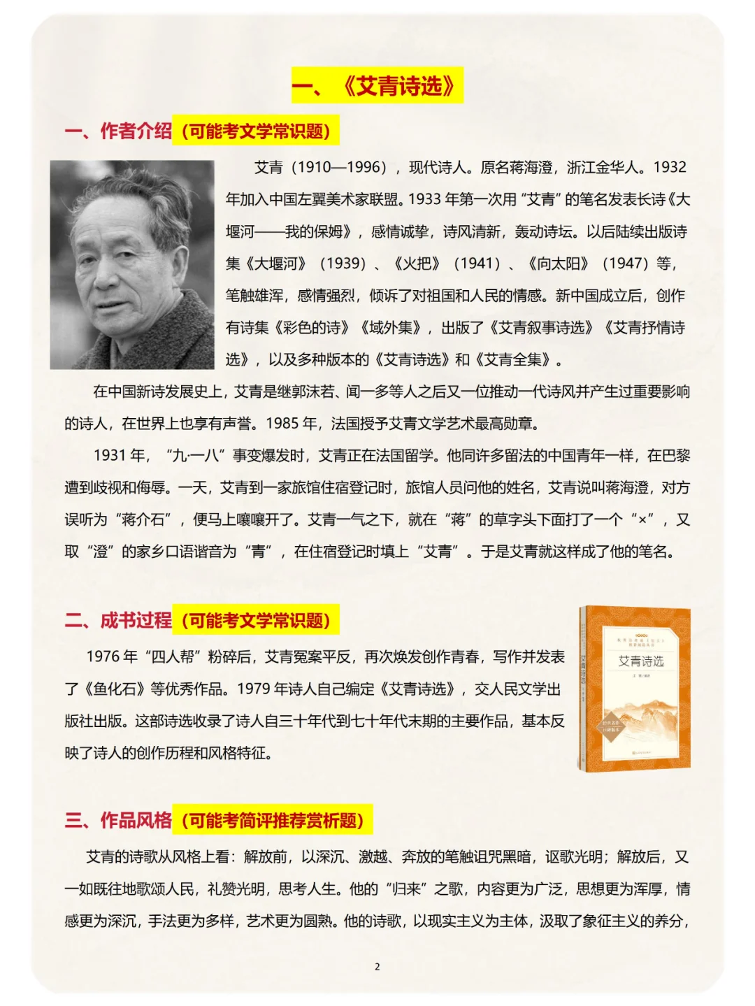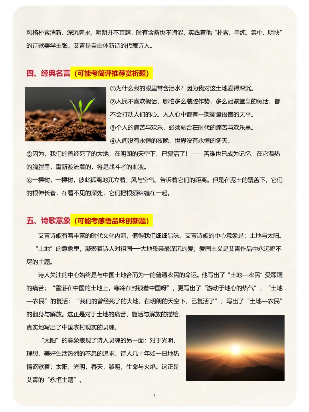 《艾青诗选》最常考的诗歌意象分析,一定要多看几遍,理解并记忆赏析的内容。