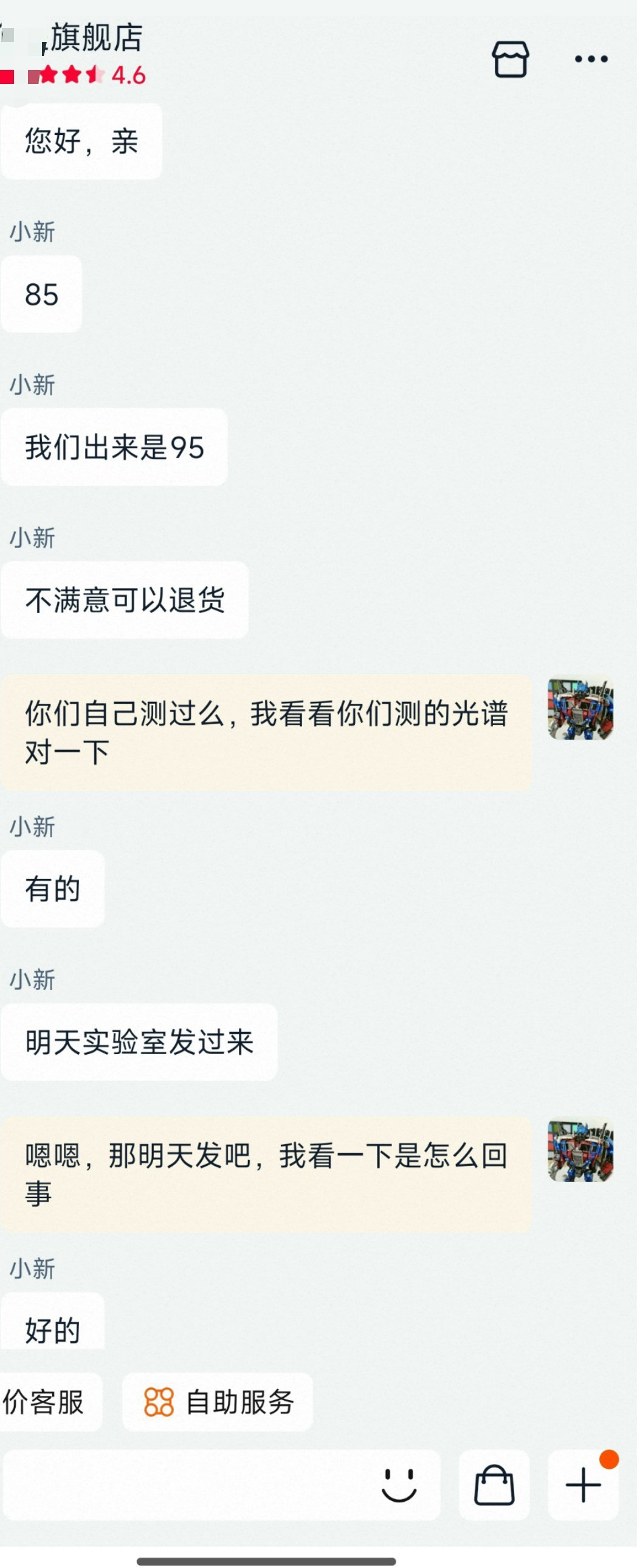 我刚从某宝某猫旗舰店,还是平台灯具排行榜第一名买了一个护眼灯。跟某多多的知名品牌一样,虚标显色指数。也差不多是85的标了95。客服一开始说有报告,然后等了一天还是拿不出来。基本上就知道怎么回事了。之前某多多处理假货蛮累的,这次也跟官方客服说一下吧。看看怎么处理。那么多用户买了,假货的影响太恶劣了。