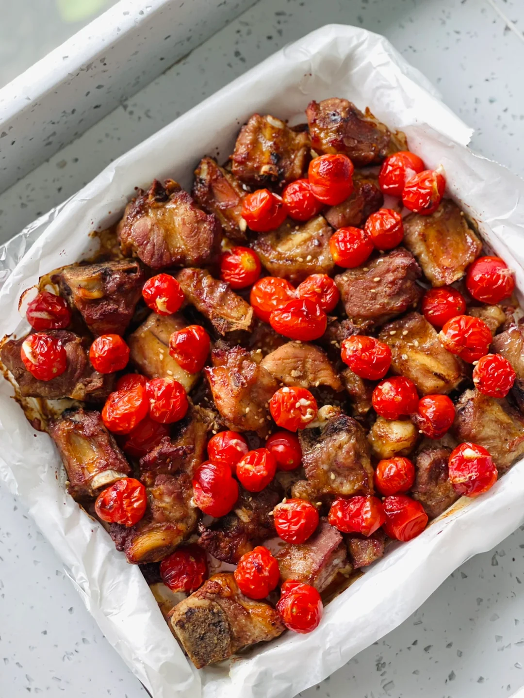 欢迎新的小伙伴加入健康午餐队伍 圣女果焗排骨 烤芦笋 再来一丢丢🍚
