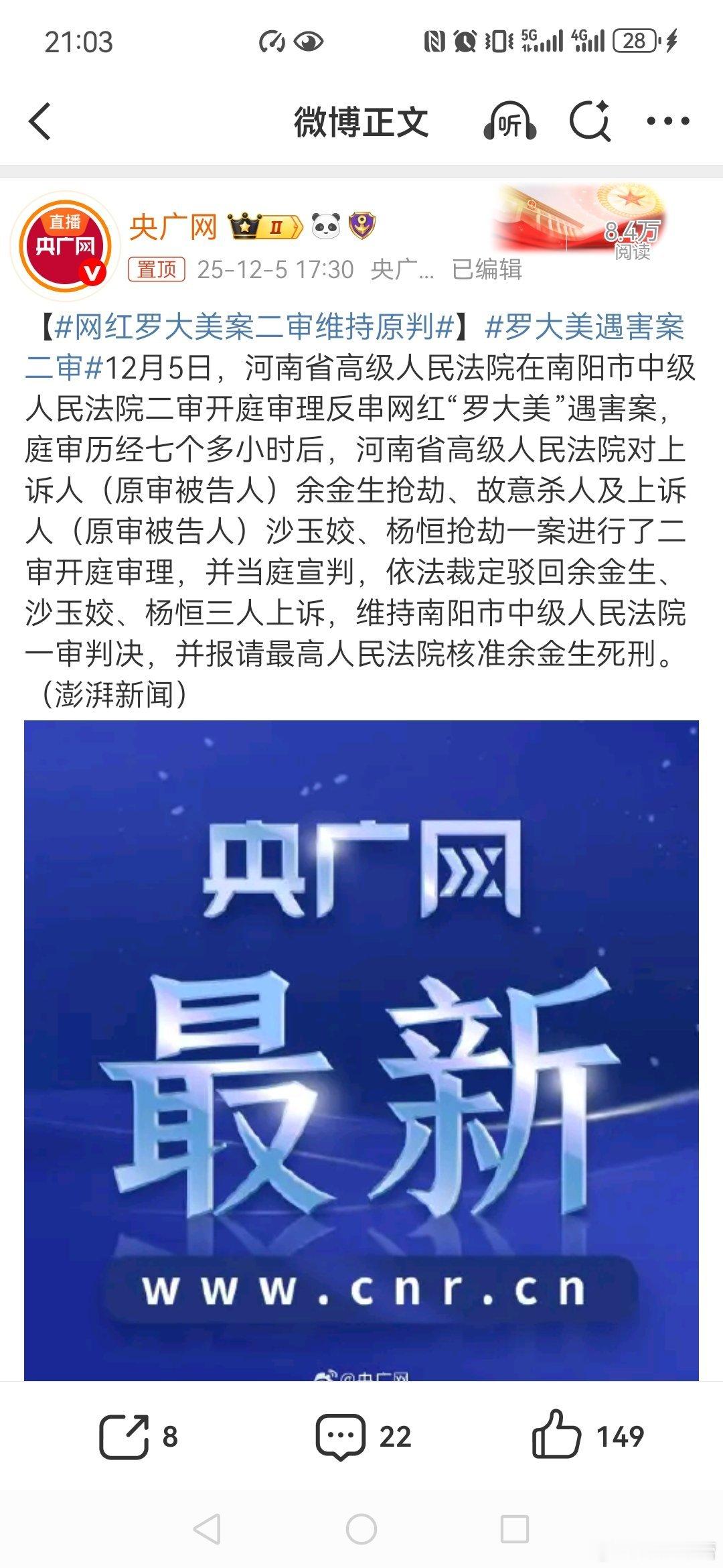 罗大美案主犯女友辩称自己胆子小【杀害罗大美凶手听到死刑大喊冤枉】罗大美家属或申请启动审判监督程序真的是嫉妒使人面目全非、心理扭曲…… 网红来钱太快了,财不外露真的要记住, 对于判决死刑的,尽快上报最高人民法院,别留着过年,浪费粮食。 家属尊重法院判决,早日让人入土为安,罗大美妹妹可以继续做网红,直播,这个流量目前她拥有,抓住时机,