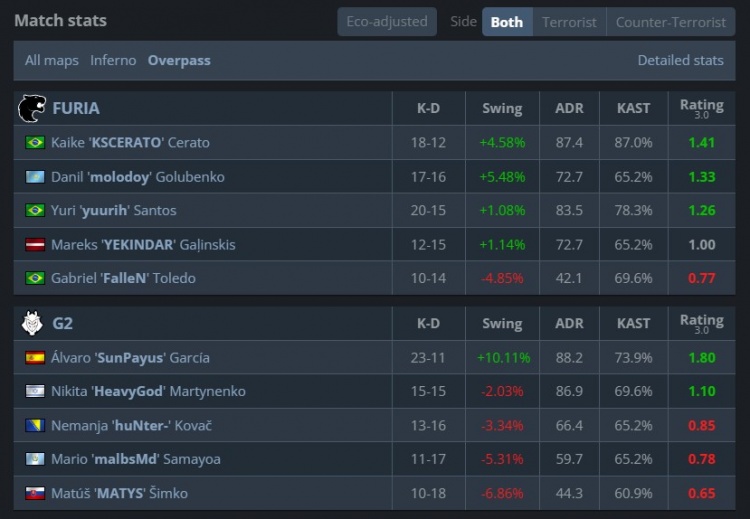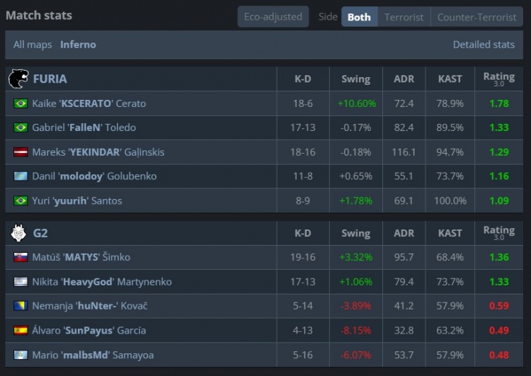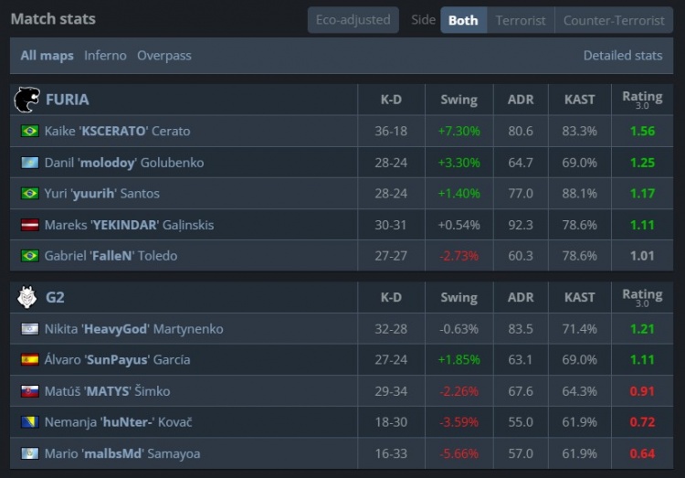 FURIA:molodoy、yuurih、FalleN、KSCERATO、YEKINDAR