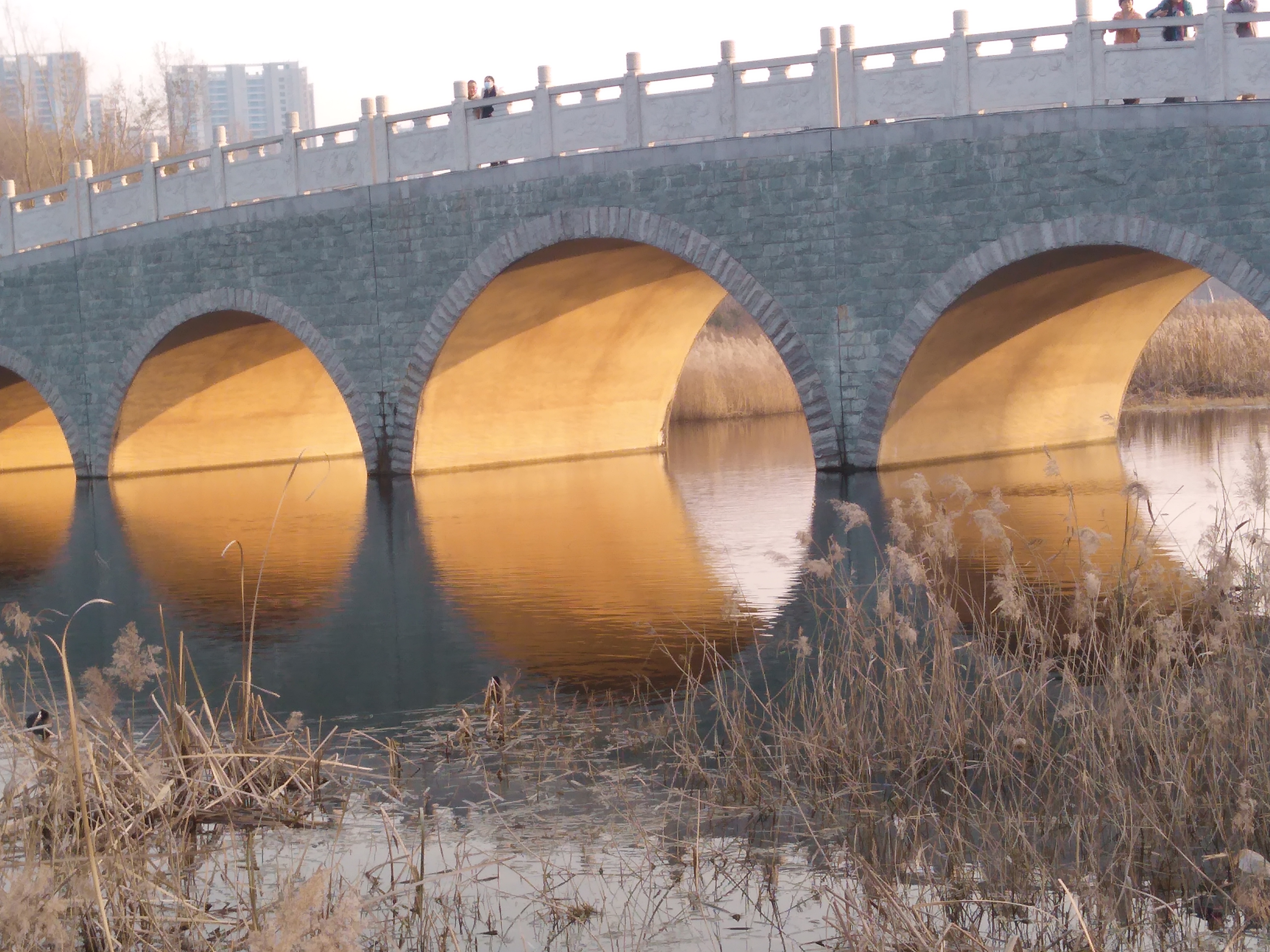 这几天,郑州贾鲁河公园又火了,在陇海西路贾鲁河南边的一处桥梁下,每天下午四点左右这里会出现金光穿洞的自然奇观,桥下的四个桥孔金光闪闪,耀眼夺目,吸引很多人来打卡拍照。