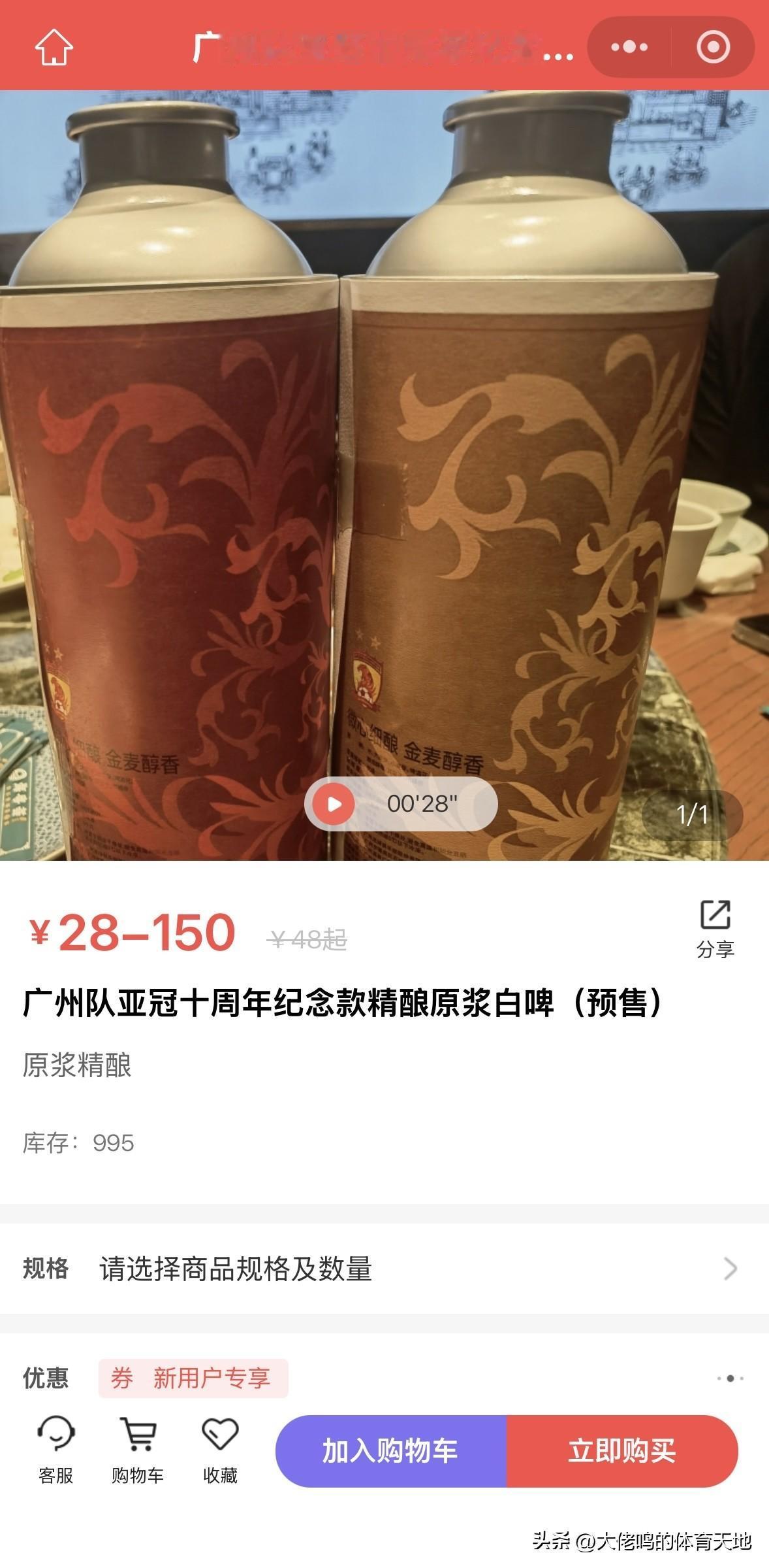 今年是广州队斩获2015亚冠冠军的十周年,尽管球队仍在远航,但并不影响俱乐部要出一款纪念版啤酒,就和之前的T恤一样,用实物纪念这个时刻更有意义…… 现在是预售,据了解,啤酒预计本月20日可以批量出货,设计已经确定好了再做包材,各位广州队死忠球迷可以关注一下[作揖]