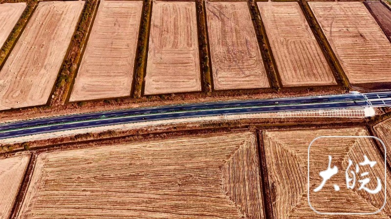 大皖新闻记者站在G347陈瑶湖大桥上,长长的黑色沥青混凝土路面蜿蜒于一望无际的田野间,犹如一条巨龙。来来往往的车辆使这条巨龙有了灵性,有了活力。