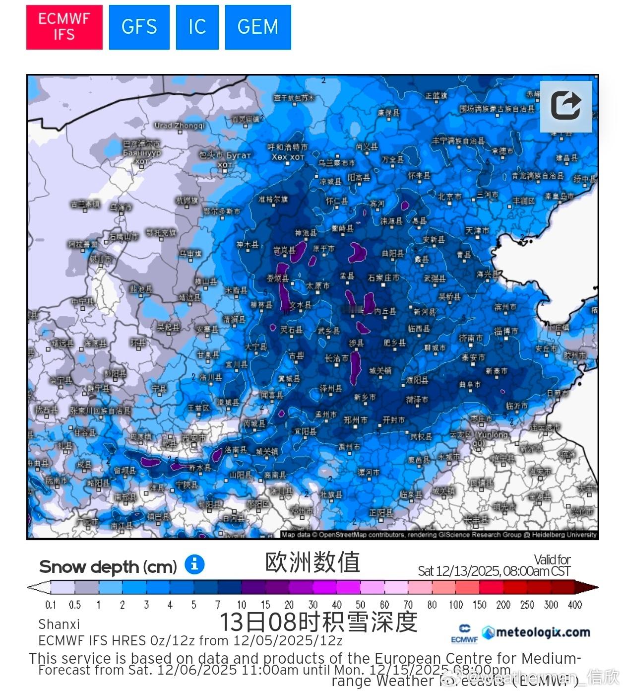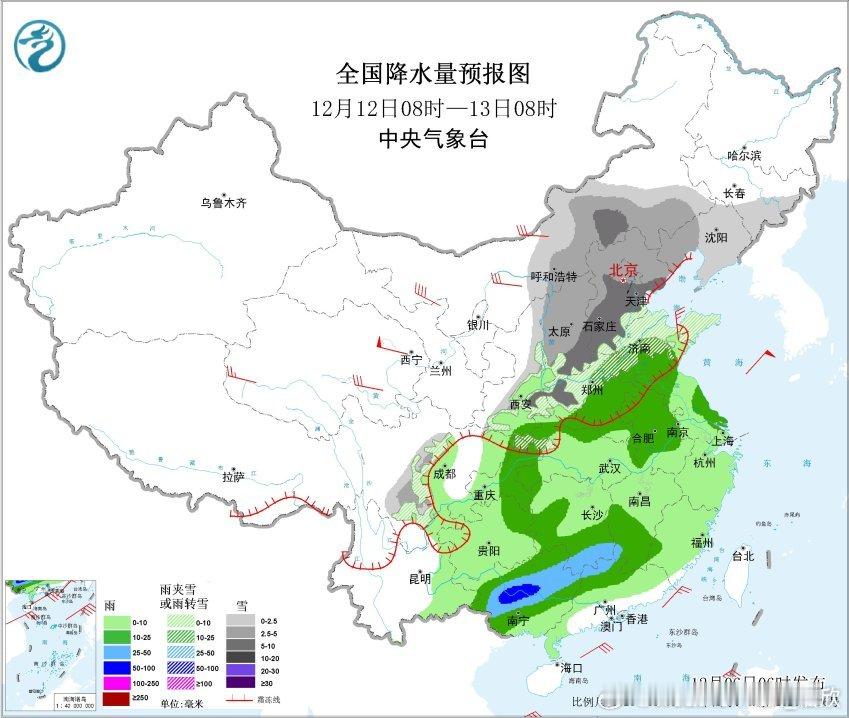 12月11日-13日中东部有大范降水。华北多地可能出现大雪,并形成明显积雪。