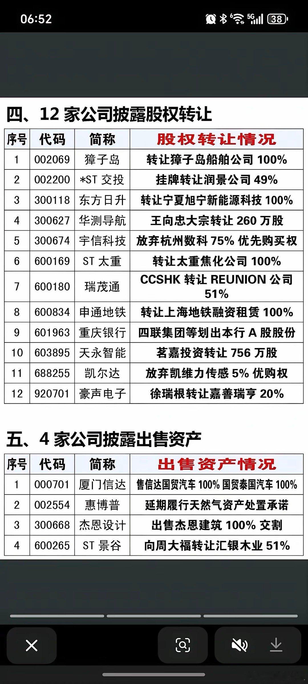 12月6日周六 资产重组、实控变更、股权转让公告!15家公司资产重组,2家实控
