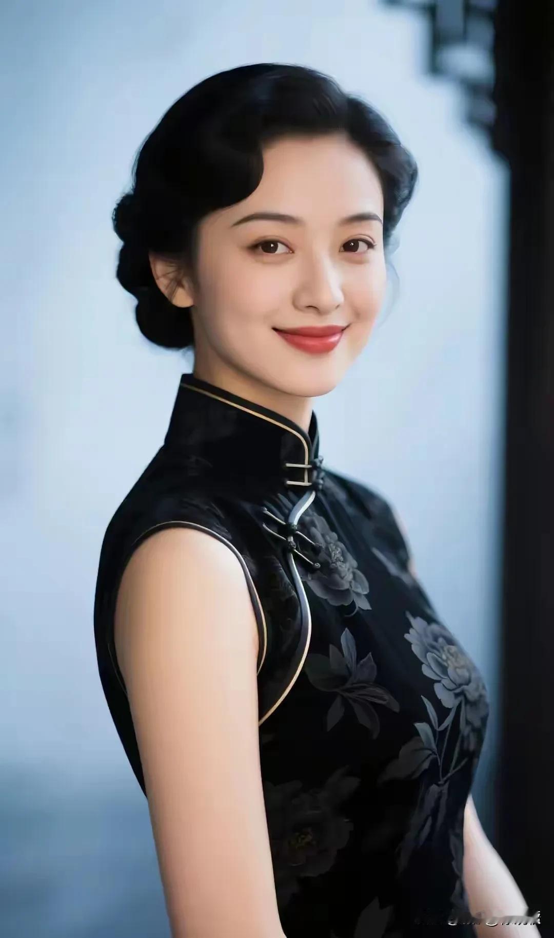 优雅旗袍少女,红唇与黑发相映成趣,古典韵味十足。