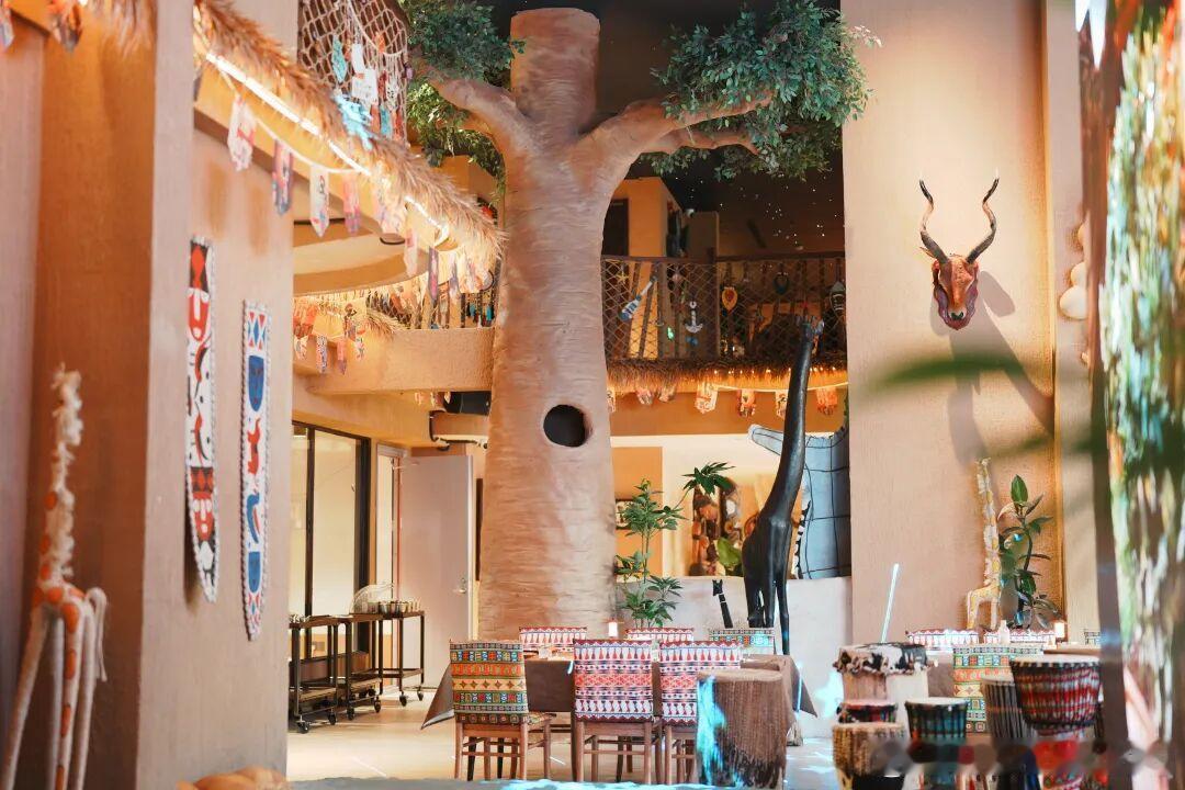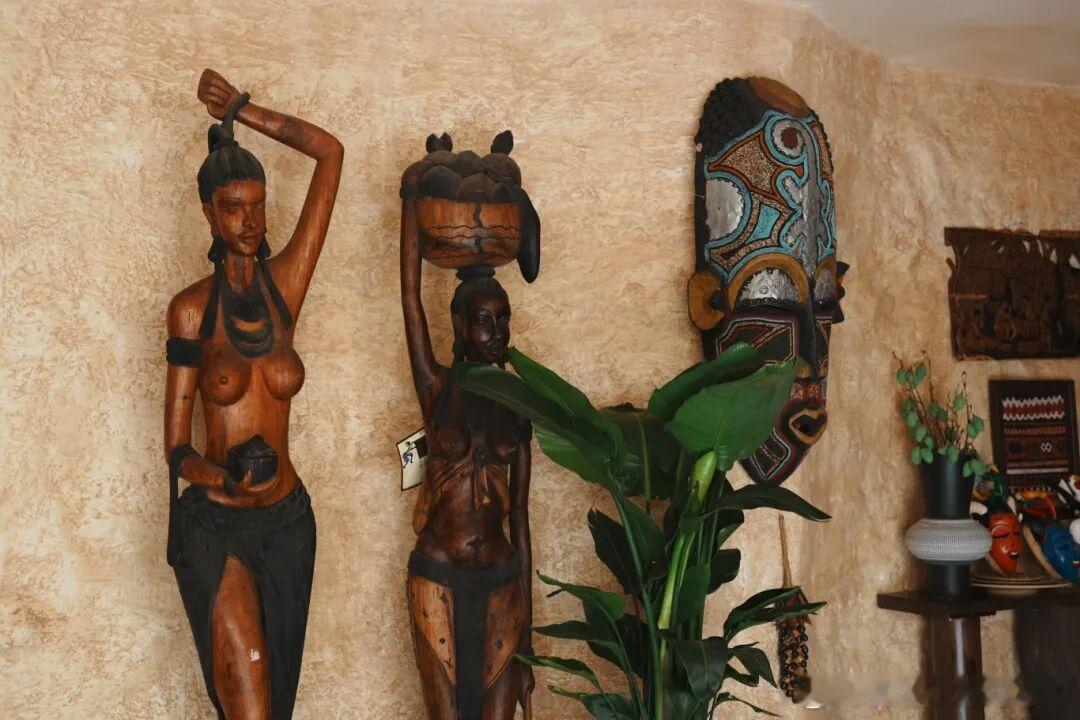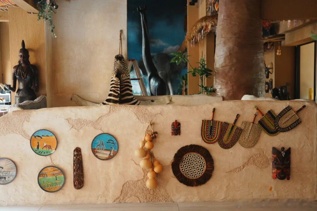 当非洲鼓的节奏穿透耳膜当光影爬上泥陶图腾当鳄鱼肉、鸵鸟肉、鹿肉、火鸡肉......在烤架上滋滋作响——不用打飞的去非洲莲都这家新晋狂野打卡地「非洲炖烤宴」让你沉浸式体验从感官到味蕾的极致非洲风情推开店门的瞬间感觉就像一脚踏出了国门空降10000多公里外的非洲大陆目之所及的工艺品全是从非洲空运而来两米高的酋长木雕举着长矛的战士木雕头顶陶罐的少女木雕......每尊木雕都有专属的非洲传说像是闯入了非洲纪录片的道具库头顶悬挂着的是肯尼亚人手工编织的包包、扇子每一款都独一无二就连墙面都镶嵌着部落面具、图腾制品最绝的是一楼的超高挑空面包树巨柱通天而立空间营造的神秘感瞬间拉满一站式非洲文化体验让你从正午嗨到凌晨你是不是也想赶紧来一场“说走就走”的非洲之旅呢?旅游红色浙西南绿色新丽水值得去周末去哪儿 丽水