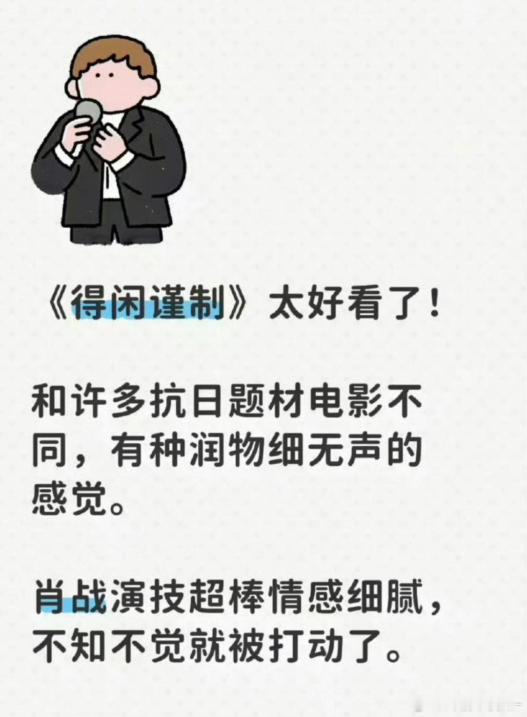 今天上午带孩子去电影院看了由肖战主演的《得闲谨制》,本以为是严肃的抗战片,没想到