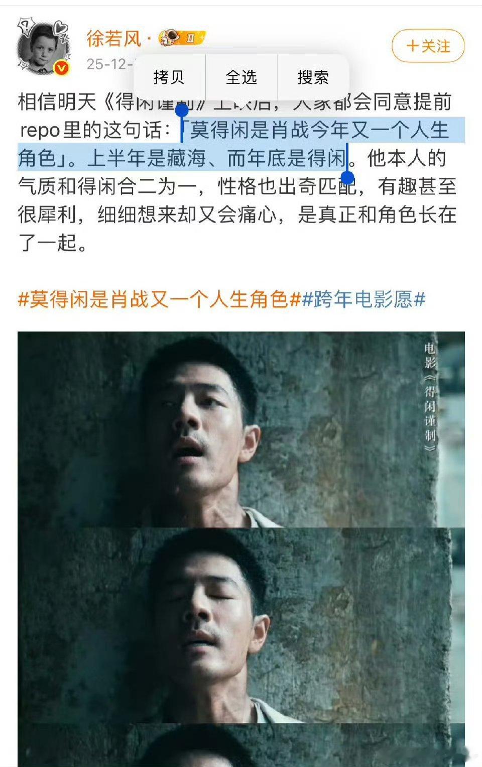 电影得闲谨制口碑 《得闲谨制》上映第一天,观影repo陆续出来了,都说肖战的表演