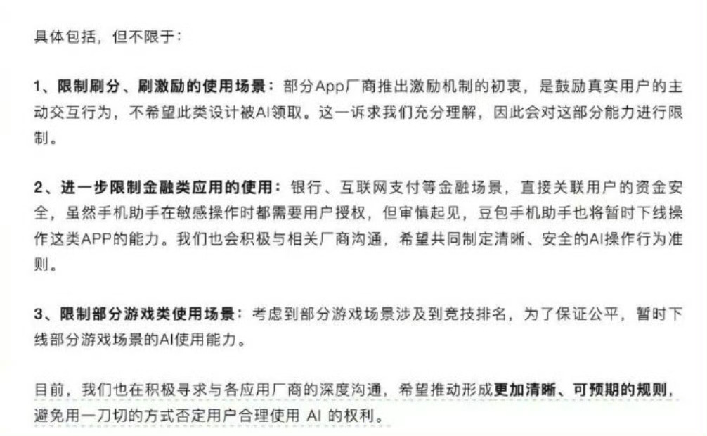 豆包手机会颠覆手机行业吗 我觉得难度不小。字节跳动与中兴联手推出搭载豆包的机型很有新意,能跨APP自动操作、搞定复杂任务,打破传统AI助手能力边界,为行业带来新方向与风口。第三方AI掌控支付、社交等核心场景关乎个人信息安全,我既不放心也不愿交出权限让其管控风险。国产AI+手机联动虽是新风口,但安全把控、APP抵制、生态利益协调等现实问题仍亟待解决。豆包手机的出现确实加速了AI手机竞争,推动功能迭代与系统智能化探索,但要说颠覆手机行业还为时过早,你们觉得呢?