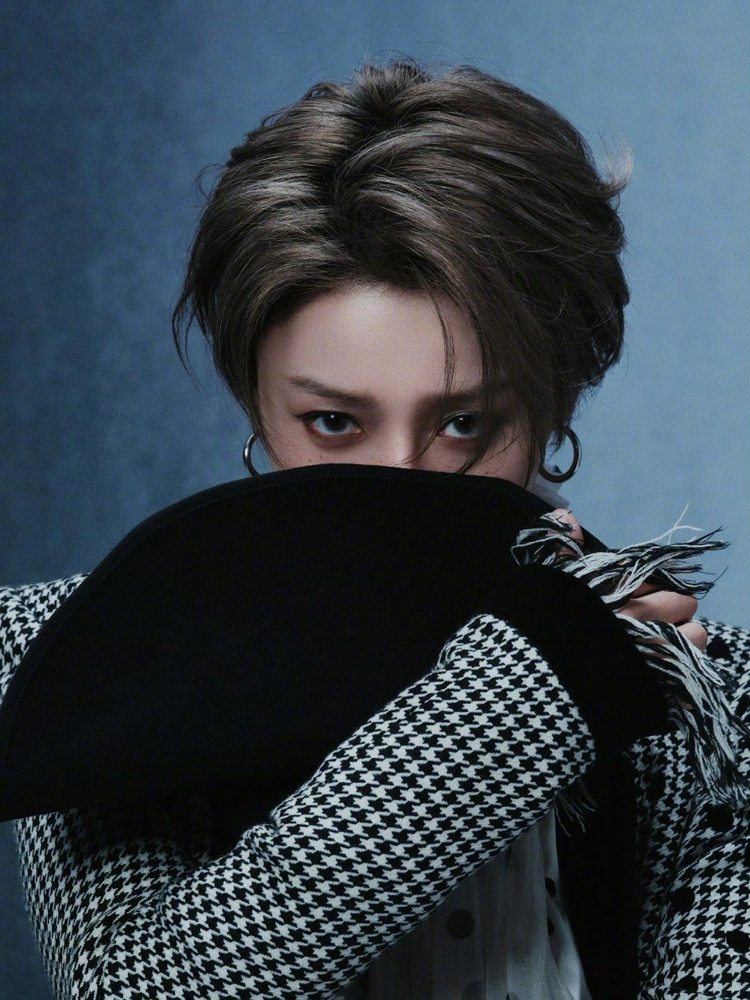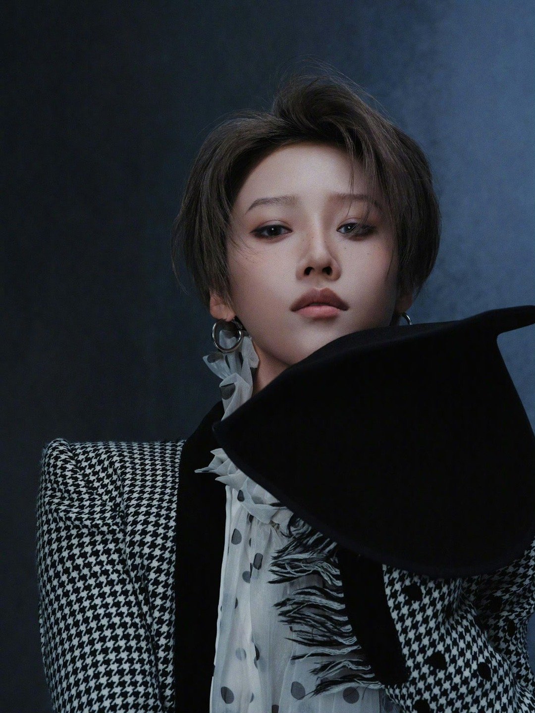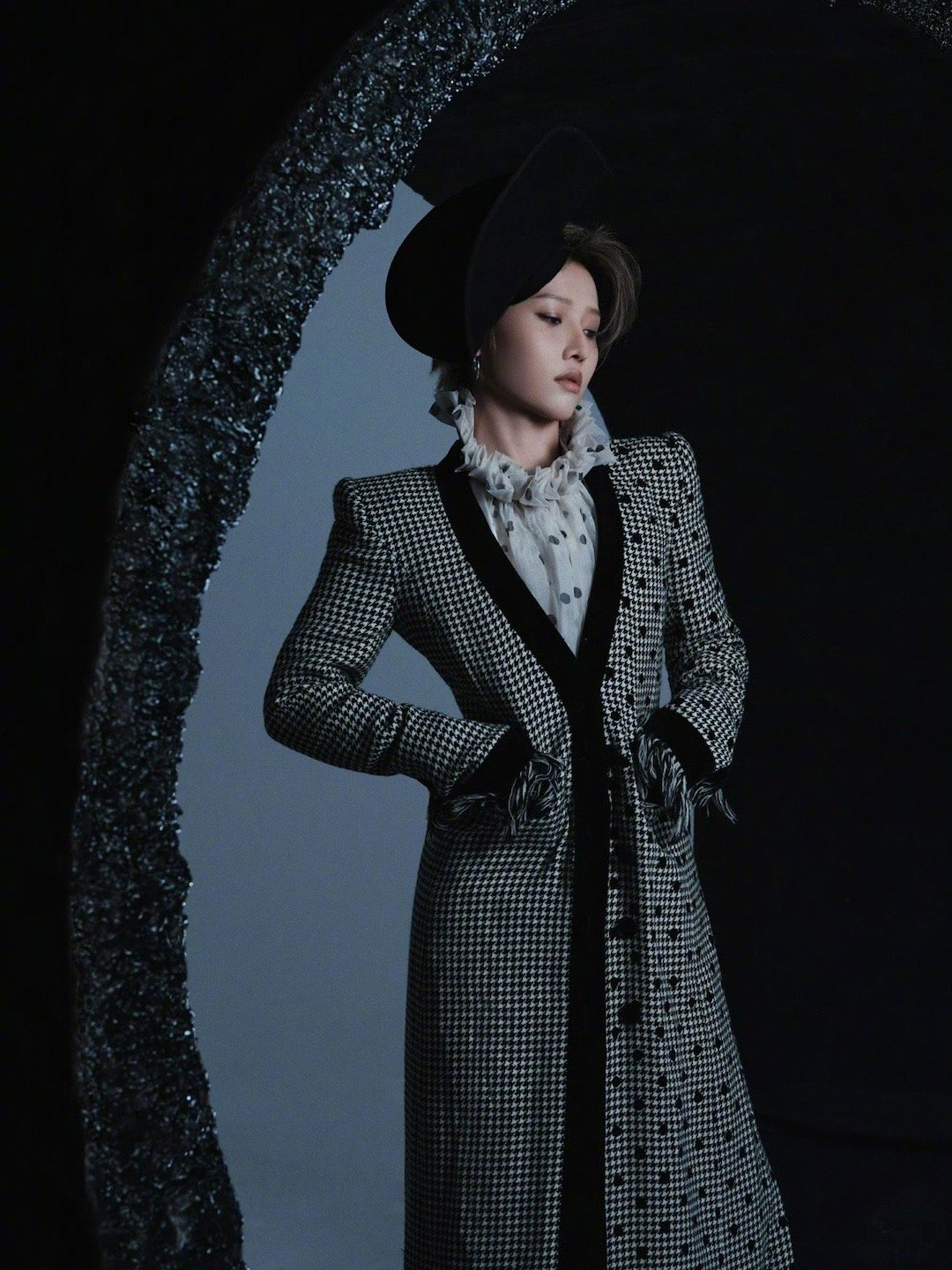 尖叫之夜出图刘雨昕出图🈶,礼帽轻掩侧影,复古千鸟格长风衣叠搭波点薄纱,凸显神秘