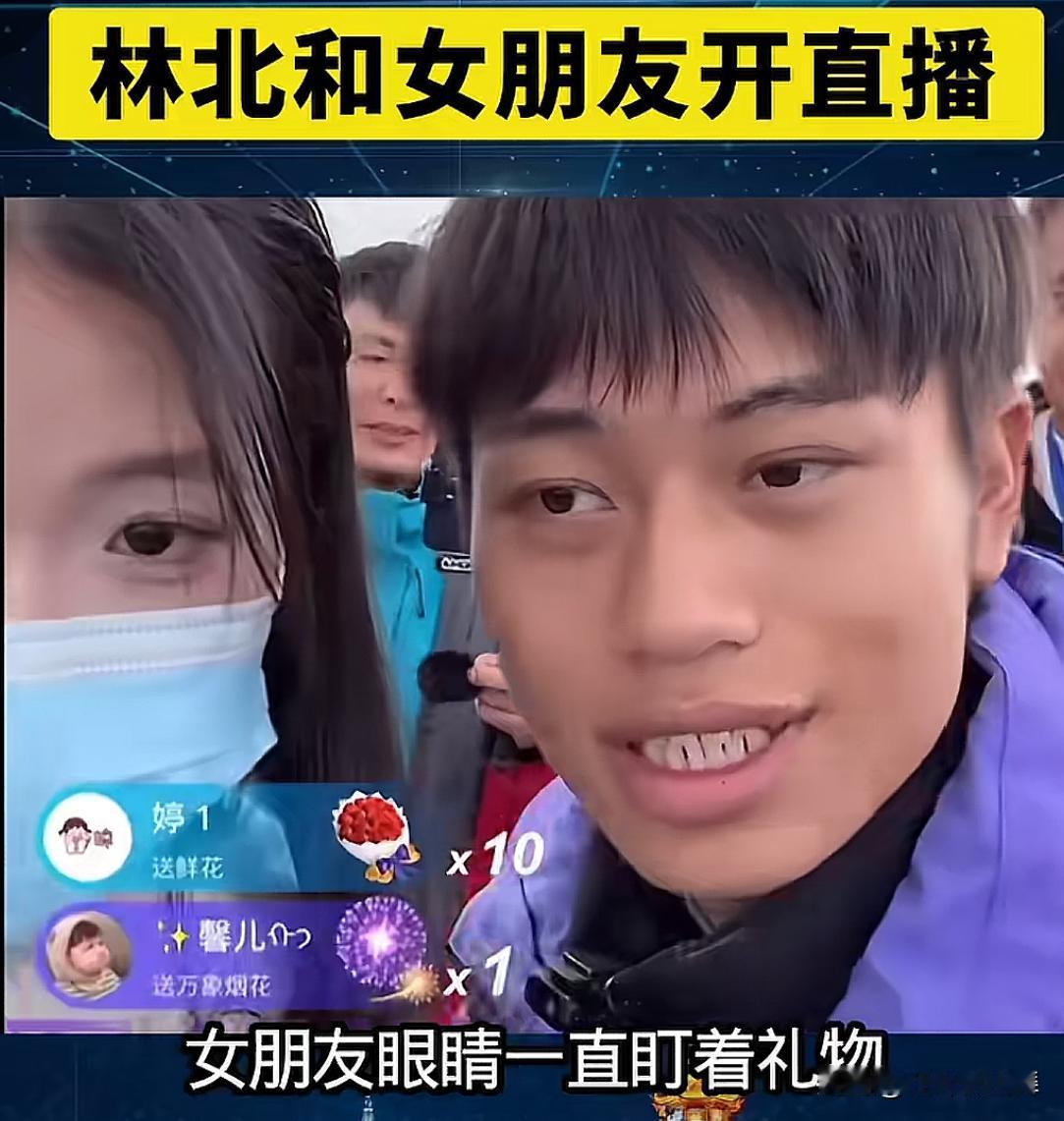 最近不是有一个野外生存的节目,让一个叫“林北”的小伙子火了吗?他退赛之后开直播,本来是想给粉丝呈现一个与女朋友甜蜜相聚的情景,同时接受粉丝们的祝福。但直播里女朋友表现出来的情况,让网友们有些不舒服。确实,林北的热度现在很高,开播后直播间人数很快就直逼10万人,全屏礼物飘个不停。但林北的女朋友是戴着口罩出镜,为什么这样选择?如果单纯的是想保护自己的隐私,害怕曝光后会影响到自己在现实中的生活,这其实可以理解。但最害怕的是,她在为自己留后路!当某天他跟林北分手之后,不至于有那么多的人认识!而且,直播画面中,林北全程的注意力都放在女朋友和粉丝的身上,而女朋友全程都把精力放在礼物上。到后面,明显可以看出林北有些失落,这不是他想呈现给粉丝的样子,也不是他期待中女朋友该有的表现。当然,现在就武断的断言他女朋友太过现实,眼里只有礼物没有林北,言之过早。也很有可能是一个普通女孩没有见过这种阵仗,所以难免注意力被吸引,表现的跟平时不一样。所以也不能因此去抨击人家什么。但就给人的直观感受而已,确实让人不舒服。希望他们两人有好的结果吧,这是粉丝们最愿意看到的结局。