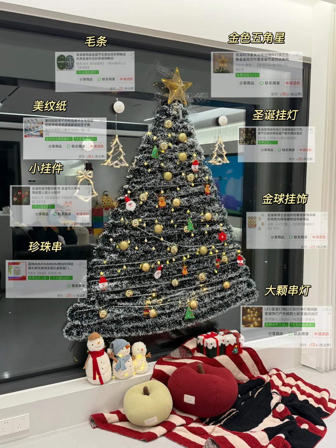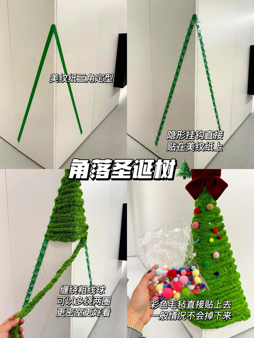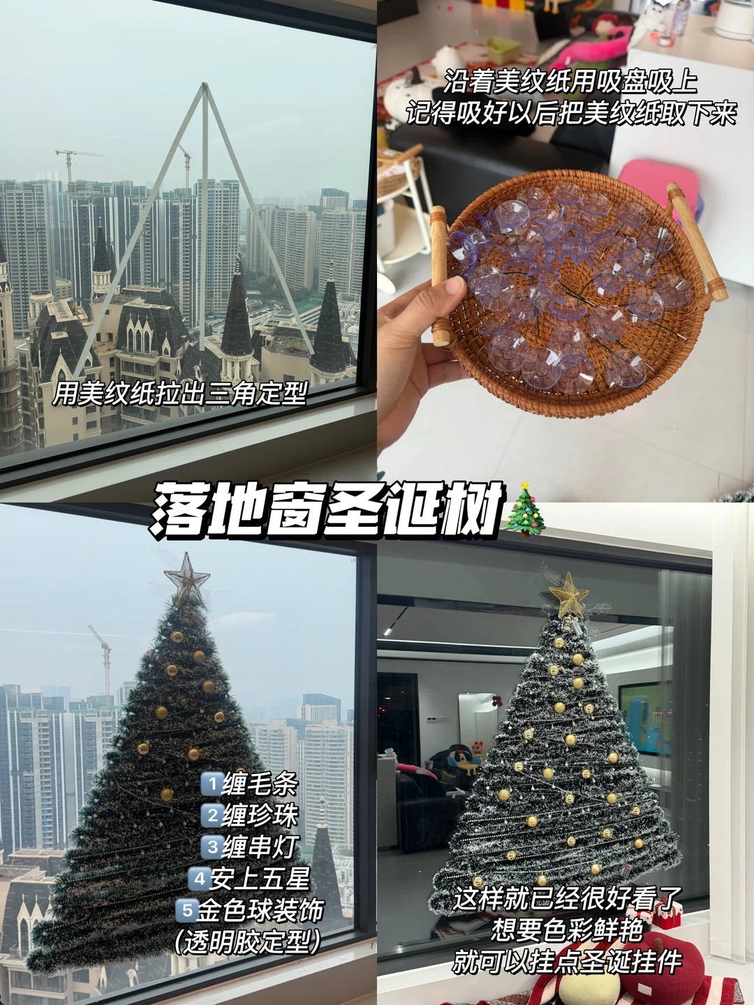 低成本高情绪价值 真的很简单 做了两款 一款是大落地窗🎄 一款是角落🌲 贴紧了 不容易掉 我已经做了一周了没掉 也不会损坏窗户和墙面 有美纹纸的 可以根据家里的布置来 🌟温馨提示 有毛孩子的 角落圣诞树 可以弄高一些 不然管不到1小时