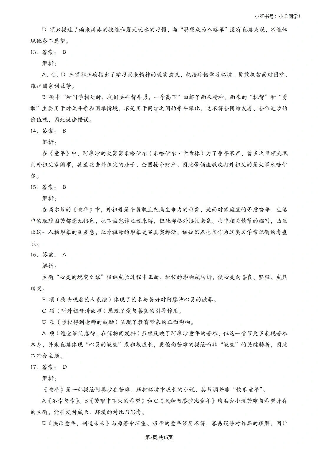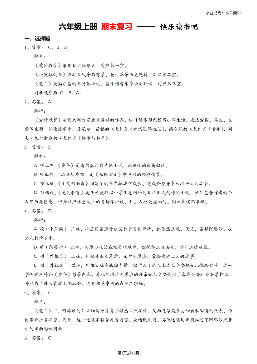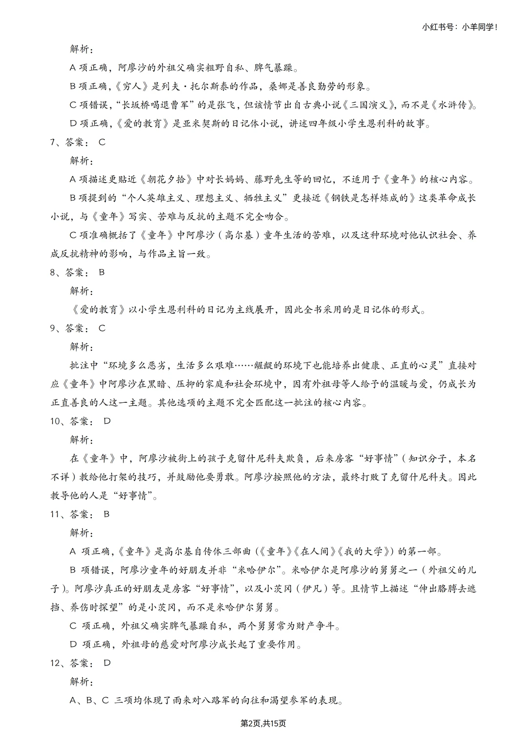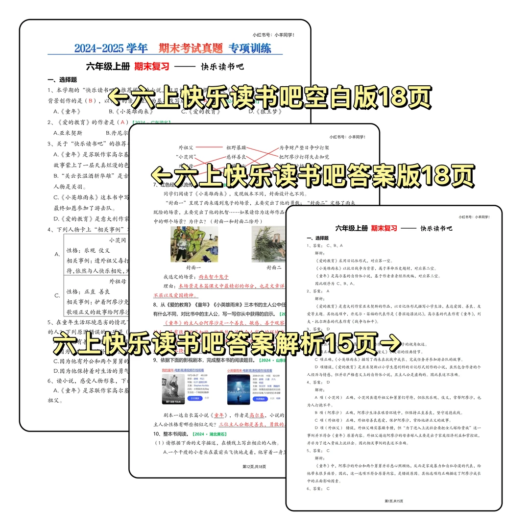 🗂快乐读书吧真题,详细答案解析,其中综合性练习无解析,可看答案版的答案,15页。