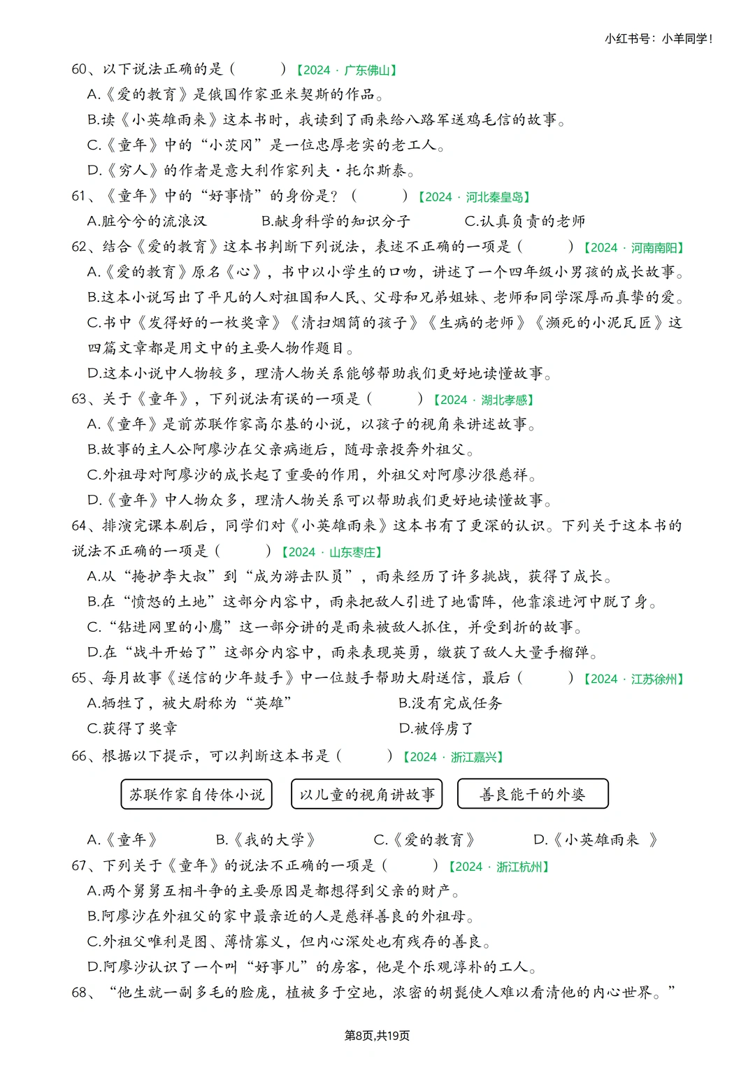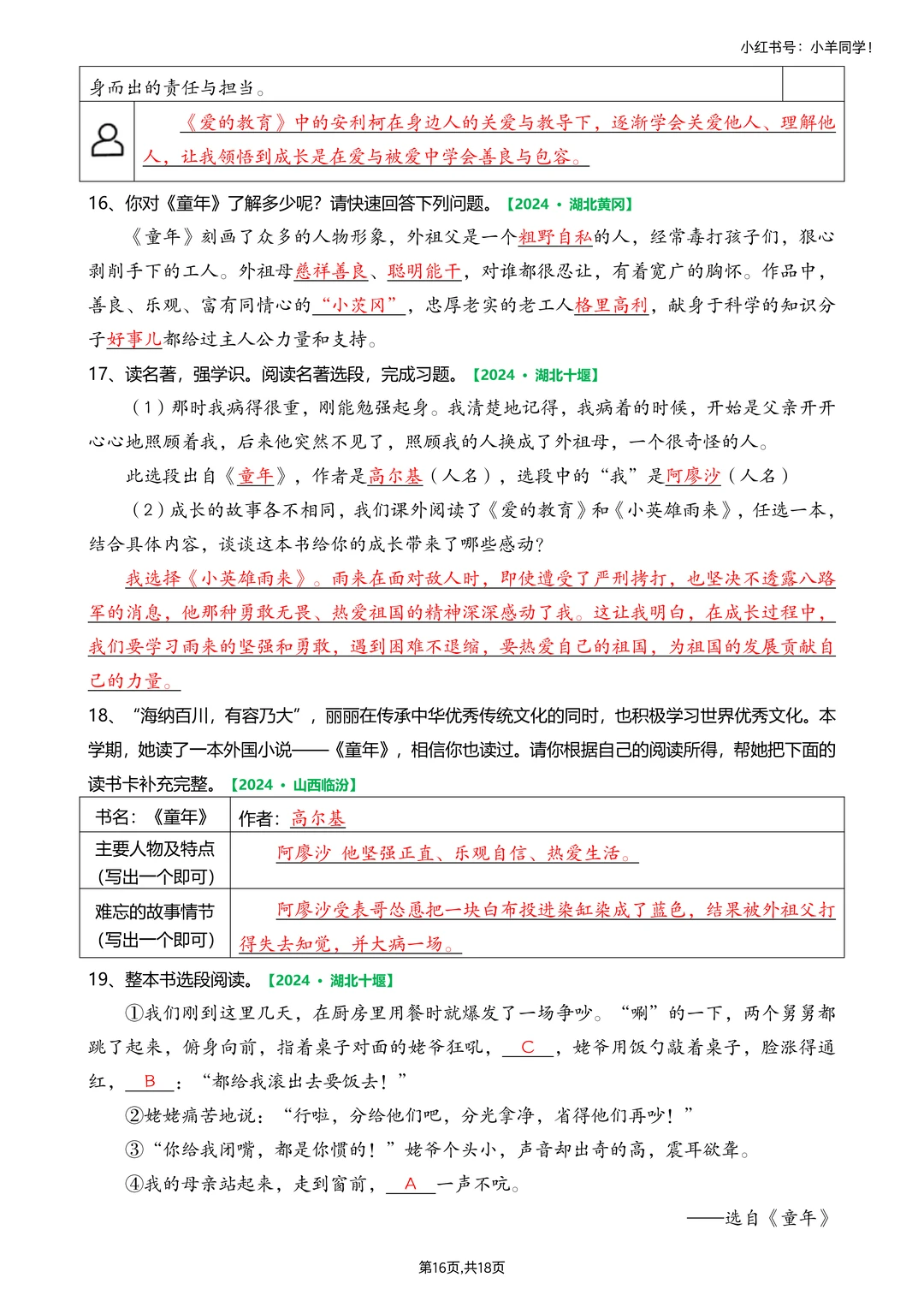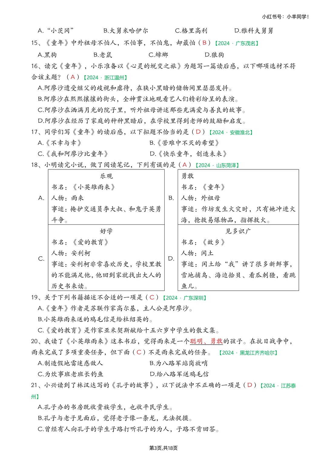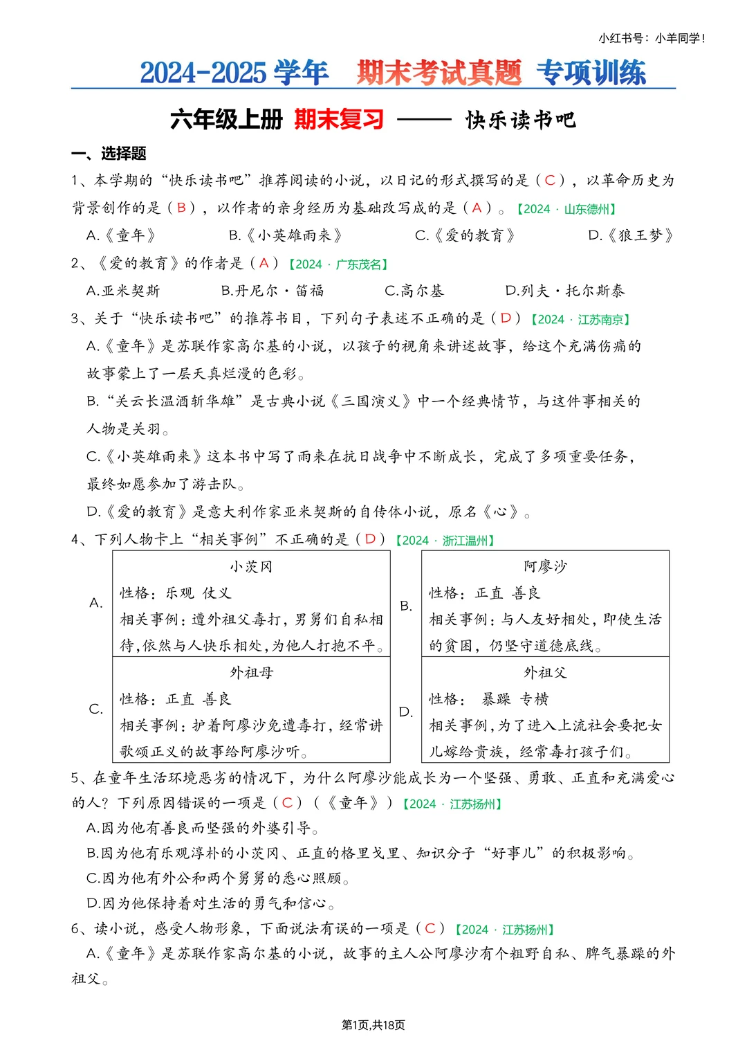 🗂快乐读书吧真题,答案版,18页。