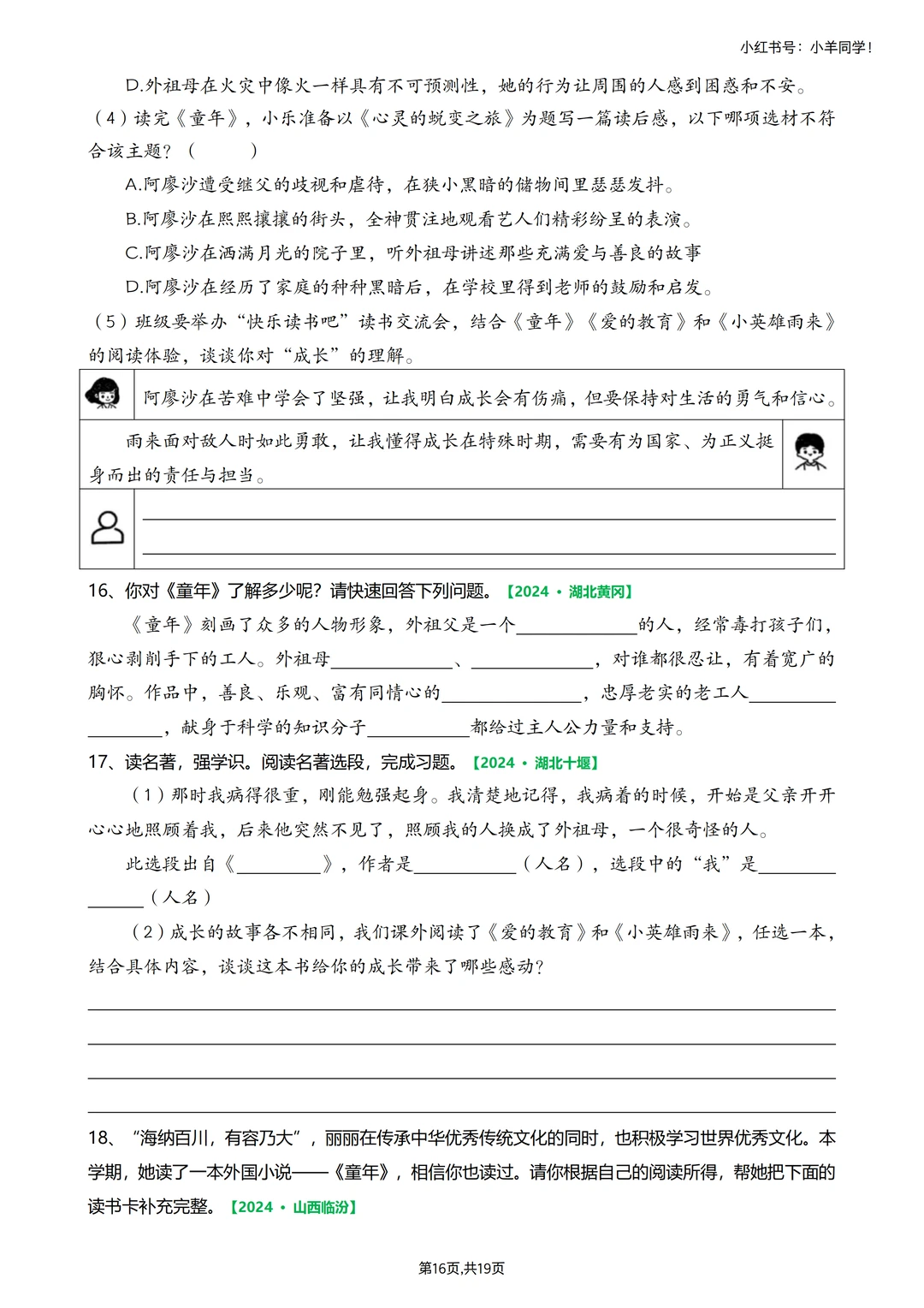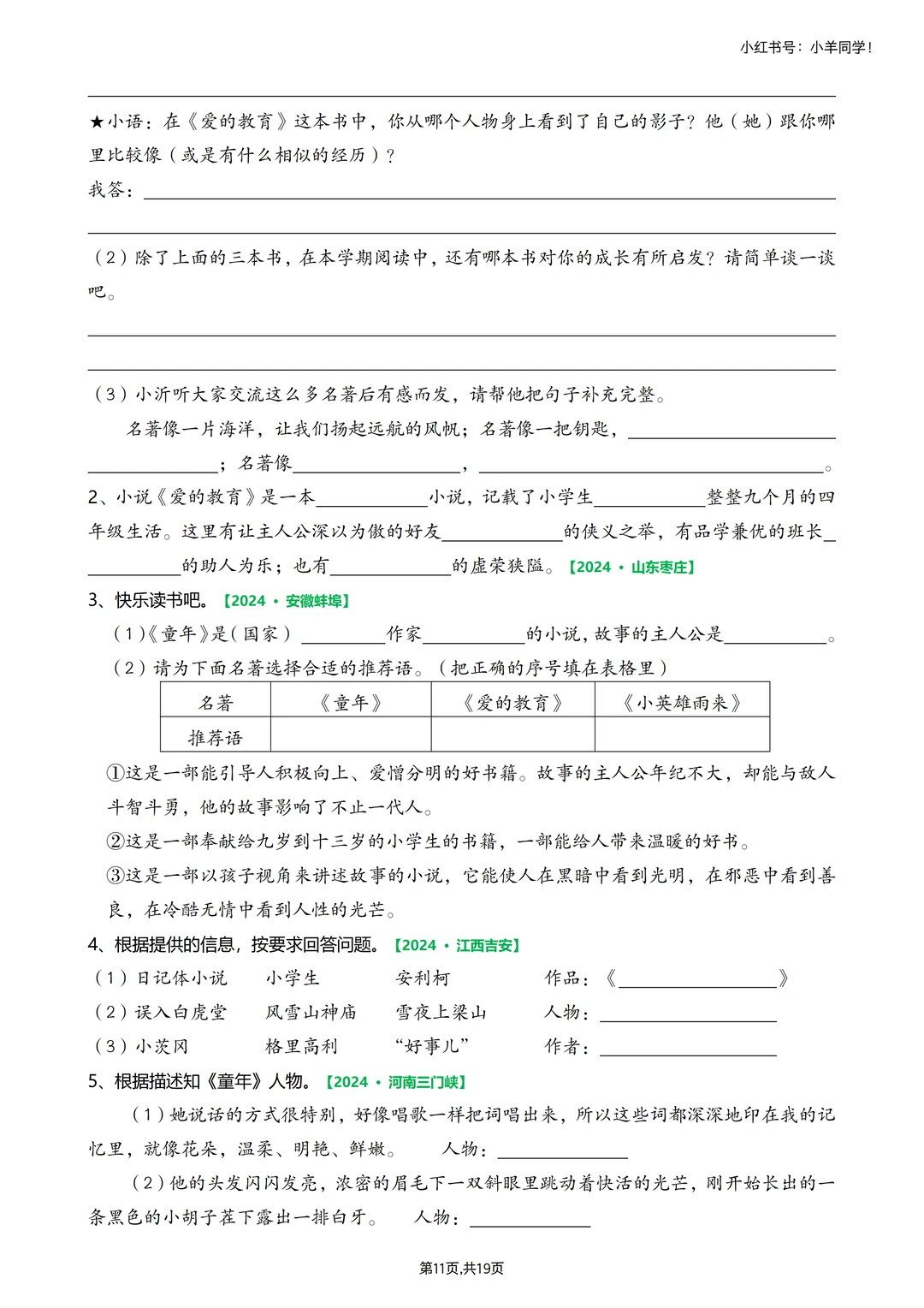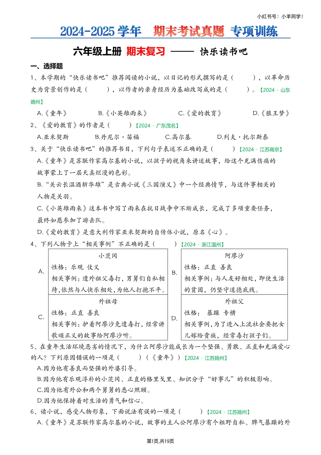 🗂快乐读书吧真题,空白版,19页。