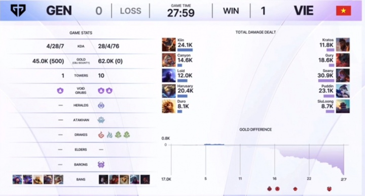 越南腐乳!GEN先输北美再输越南,本场被VIE打出4-28的人头比
