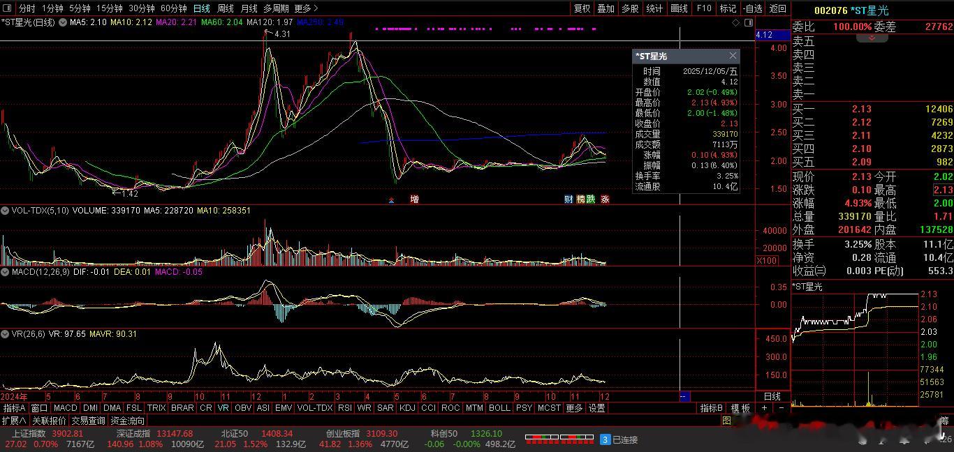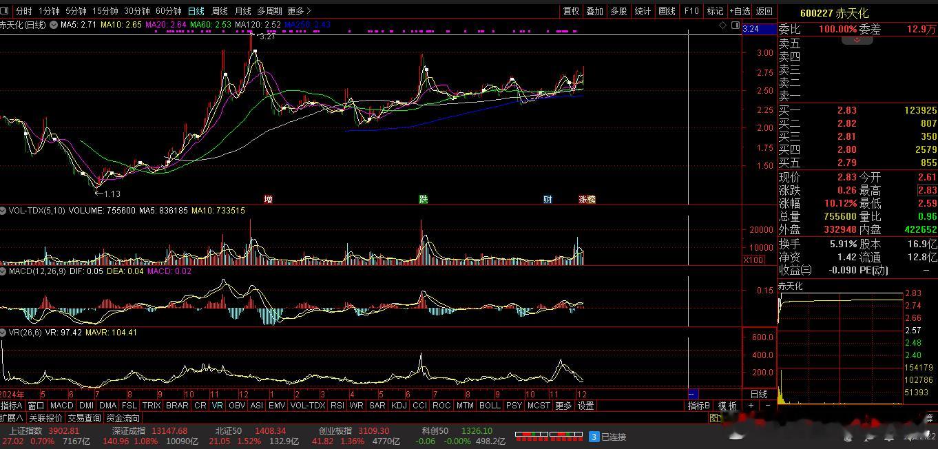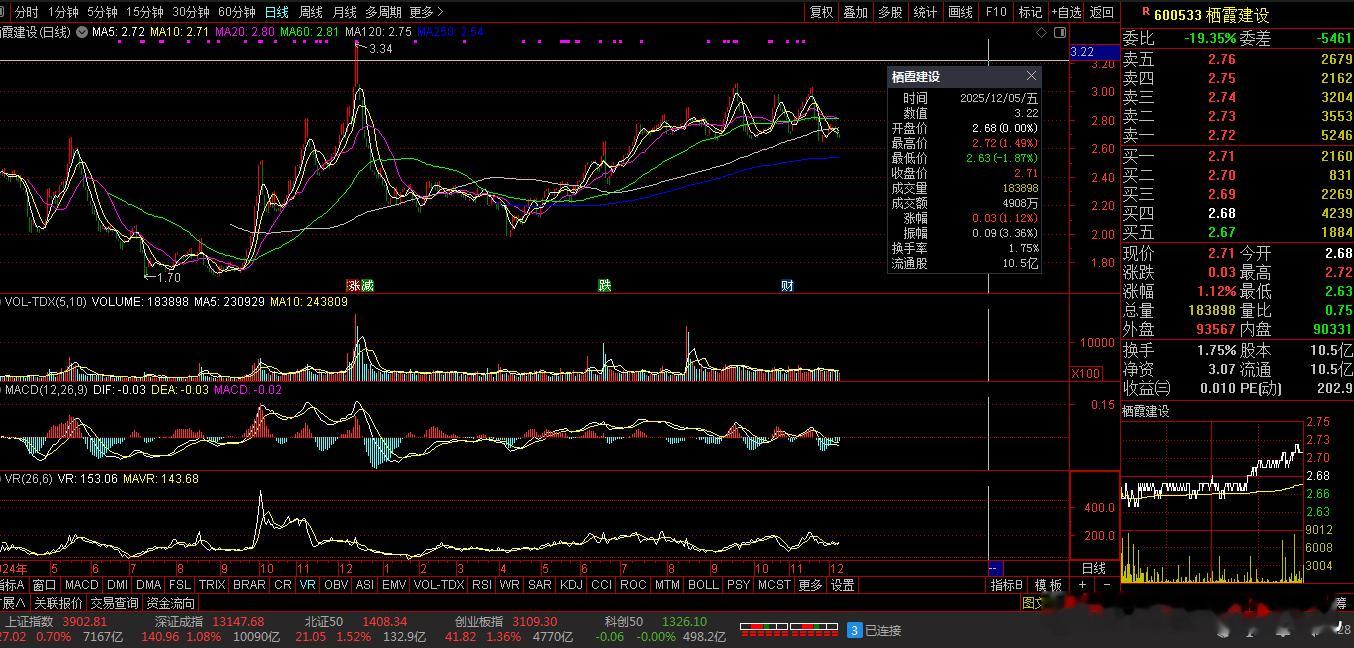 【财富晚茶】三元股市收评:沪指涨0.70%:军工强势上扬油气探底导语:作者系《网易号》优质财经领域创作者。曾经原创作者和知名网易号旅游领域创作者。大跨度行业等的写作,颇受网友喜爱。作品发表于2025.12.05.15:18优雅端庄晚风。(标题照片:全球第一军事强国:美国航母实战演练编队)一、栖霞建设:八年箱底600533 栖霞建设 盘中01涨1、八年筑底:底部突破今日视野:前期四顶:酝酿冲刺。2025-12-05 截止15:00:收盘股价:2.71元,上涨1.12%。成交总量:183898手。成交金额:4908万元。总换手率:1.75%。总市值达:28.45亿元,流通市值:28.45亿元。2、地产开发:行业翘楚主营业务:房地产开发-租赁物业管理。公司品牌:全国房地产界盛誉现代化企业集团。3、营收净利:优质公司业绩减亏:2025-09-30 三季度报:公司营收:公司营收:45.2216亿 同比增243.73%,实现1051.9887万 同比增106.05%。二、多空搏杀:沪深红盘1、追踪盘面:蛛丝马迹沪深场景:沪指:低开三涨,四跌四涨。深指:高开三涨,四跌四涨。午盘:一跌三涨,一跌一涨。尾盘:二跌一涨,次高红盘。看点之一:沪指强势:盘中低开:瞬间冲顶。看点之二:一匹黑马:北证走强:最高1.66%。看点之三:沪深北市:合计成交:1.73万亿元。场内个股:4378股飘红。2、板块涨跌:风口依然涨跌观察:板块见证:板块拉升:军工、林业、保险、航天装备等。板块走低:油气、纺织、地方性银行、酒店餐饮等。概念活跃:超导、海峡西岸、光通讯等。3、技术看盘:涨跌位置观K线提示:精彩多空博弈。12月08日:沪指突破阻力:03907点看涨,前程似锦;跌破支撑位:03863点看跌,日暮途穷。深指突破阻力:13164点看涨,鹏程万里;跌破支撑位:12938点看跌,不堪造就。三、三元板块:风口潜水1、追踪盘面:视角视野三元脆弱,沪深弱势。104股上涨,涨幅5%以上:4股涨停板。14股下跌,跌幅5%以上:2股跌停板。涨幅0%:12股0停板。涨幅0.00%+上涨个股:12+104=116股票赚钱。沪深两市:合计成交1.73万亿元。总体归纳:三元股票:盘口强势。2、追踪盘面:主力进退换位思考:沪深反弹,尾盘抢筹。沪指距9:31-15:00:前1小时放量盘跌,中2小时略量盘升,后1小时略量盘跌。深指距9:31-15:00:前1小时放量盘跌,中2小时略量盘升,后1小时略量盘跌。沪深两市:合计成交:1.73万亿元。四、透析个股:聚焦涨跌1、涨幅榜眼:处排查摸主旋律:涨幅榜之中:寻找启动600227 赤天化 000826 启迪环境 002076 *ST星光涨幅榜-1:600227 赤天化主营业务:化工医疗煤炭等研产和销售。公司品牌化肥产业区域龙头企业。涨幅榜-2:000826 启迪环境主营业务:数字环卫-水务生态-固废处置等研产和销售。公司品牌:专业化环境治理整体解决方案和头部企业。涨幅榜-3:002076 *ST星光主营业务:LED照明-紫外消杀-汽车照明-锂电池生产设备等研产和销售。公司品牌:光科技应用-锂电池头部企业。2、跌幅榜眼:处排查摸主旋律:跌幅榜之中:寻找金子300391 *ST长药600568 ST中珠300027 华谊兄弟跌幅榜-1:300391 *ST长药主营业务:医药制造-通用设备制造-新能源的研产和销售。公司品牌:亚洲最有影响力道地药材全产业链头部供应商。跌幅榜-2:600568 ST中珠主营业务:药品-肿瘤治疗产品-住宅地产开发等研产和销售。公司品牌:大健康-肿瘤治疗头部企业。跌幅榜-3:300027 华谊兄弟主营业务:电影电视剧制作衍生业务-艺人经纪服务等研产和销售。公司品牌:中国血统的世界级娱乐集团。3、潜力榜眼:处排查摸主旋律:潜力榜之中:寻找估值002496 *ST辉丰 300301 *ST长方 000669 ST金鸿潜力榜-1:002496 *ST辉丰主营业务:生物农资-农资电商-石化仓储供应链-项目投资。公司品牌:中国领先亚临界小分子高温裂解工艺高科技专利产品和头部企业。潜力榜-2:300301 *ST长方主营业务:LED照明光源器件。公司品牌:LED照明光源器件头部企业。潜力榜-3:000669 ST金鸿主营业务:天然气。公司品牌:国内最具实力的综合性清洁能源服务商。五、本创作者:优质网易投资投机迷茫之中:给予尽可能有帮助:资本市场风险自负。(优雅端庄晚风《网易号》优质财经领域创作者和原创作者; 违者必究)
