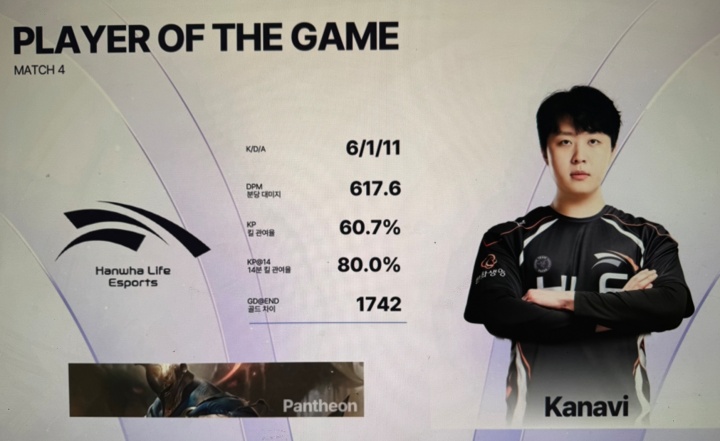 直播吧12月6日讯今日LCK赛区Kespa杯赛HLE新阵容首战成功击败C9,作为HLE的两名新援。打野Kanavi操刀潘森取得6/1/11的豪华战绩,更是拿下本局比赛的MVP。
