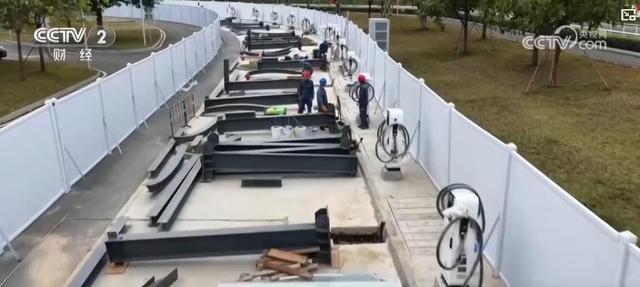 总台央视记者平凡:我现在是在深圳虹桥公园的超充示范站,这座站目前正在抓紧施工当中,预计在年底前投运。而这座站最大的特点是61把充电枪全部具备车网互动功能,这也是整个粤港澳大湾区规模最大的车网互动示范站。