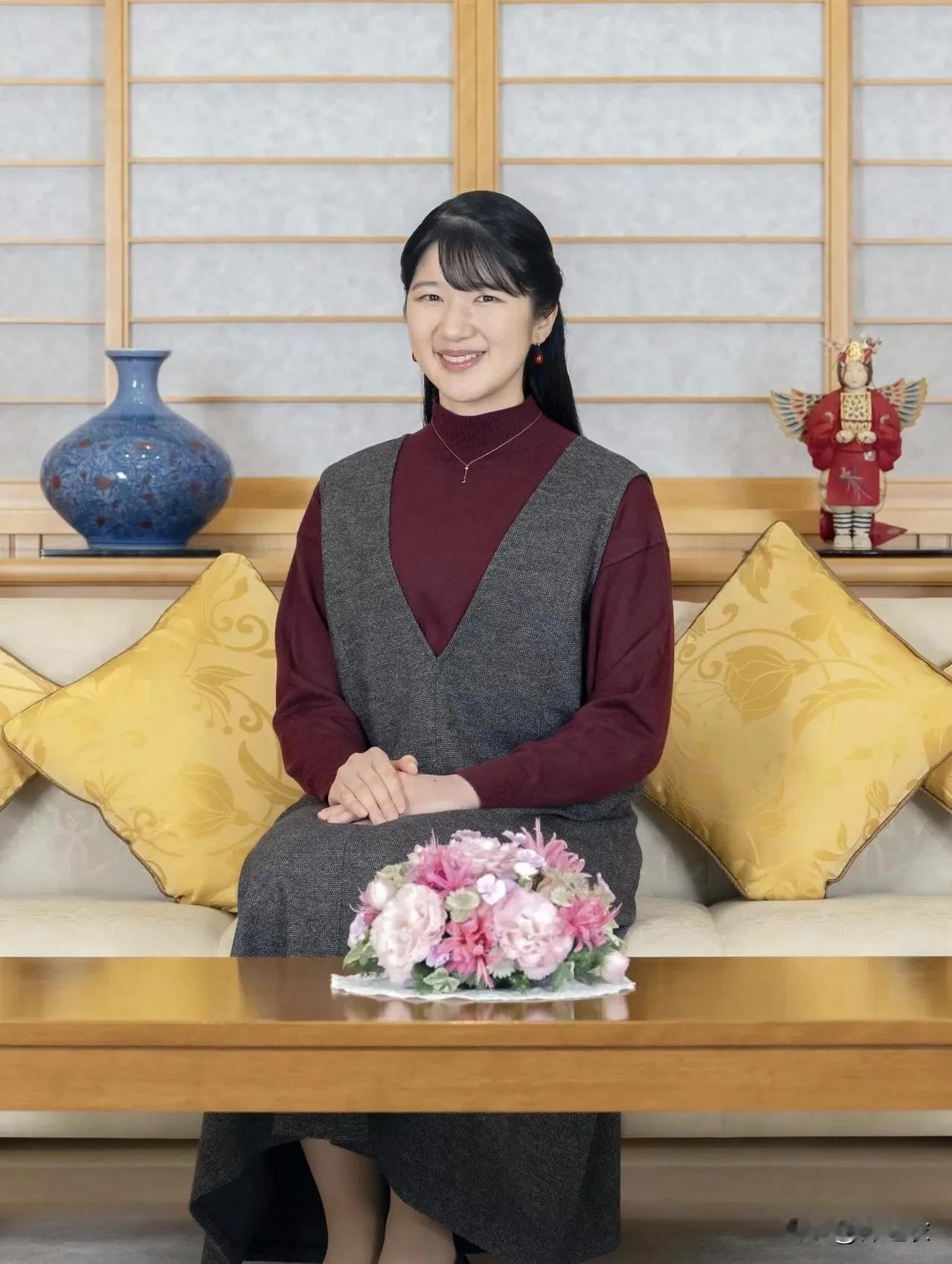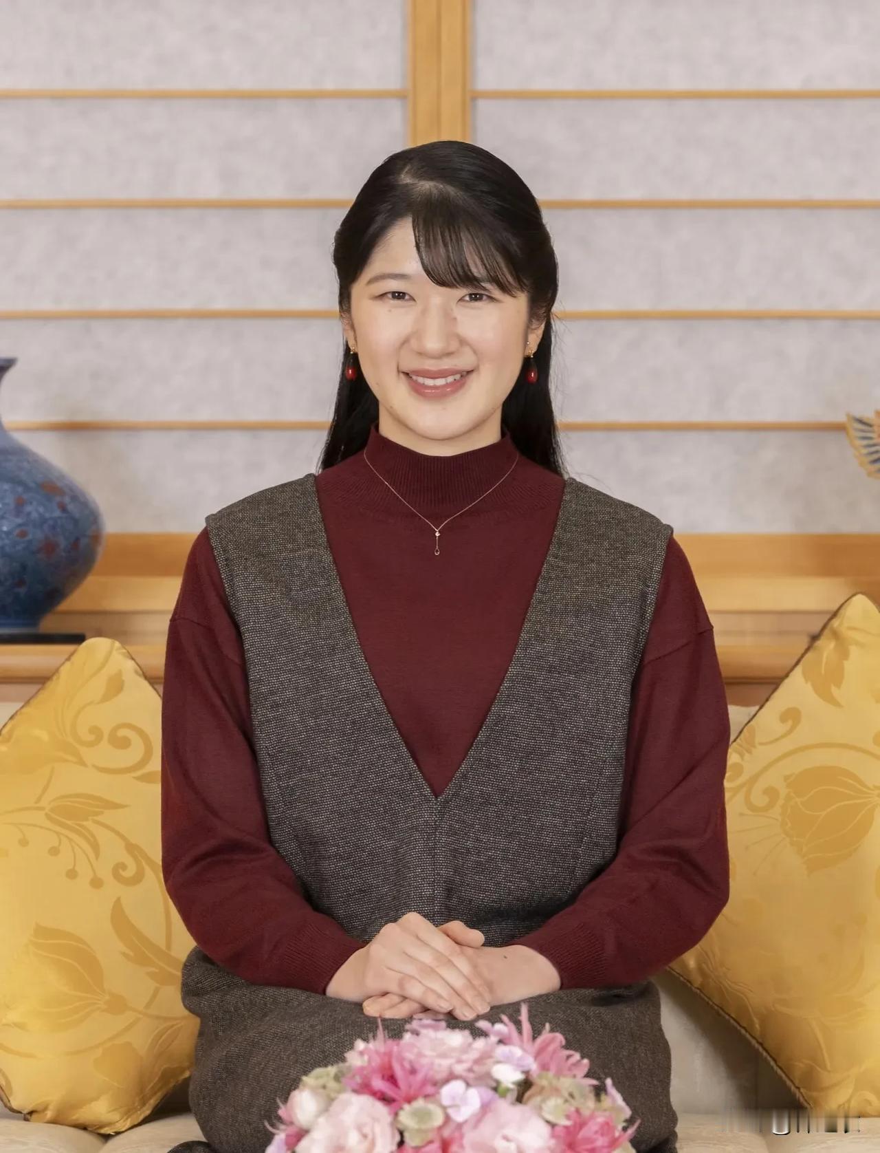 日本宫内厅近日发出来的爱子公主24岁的生日照片,爱子公主面带微笑,端庄的坐着,手