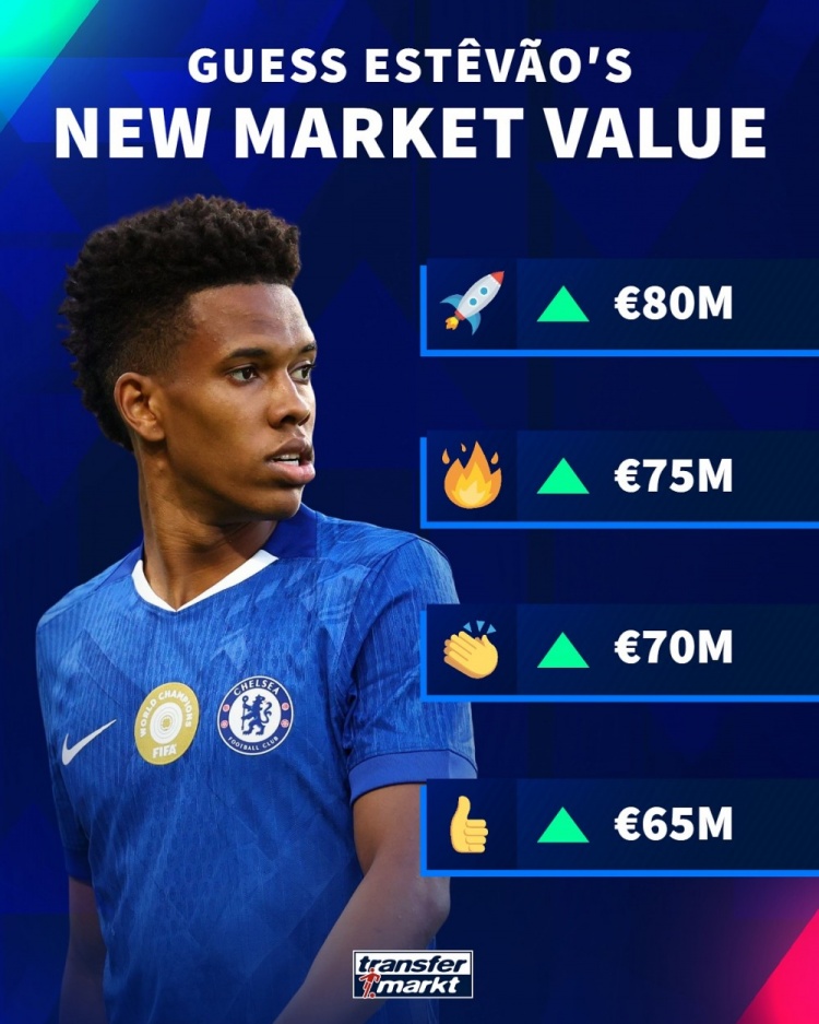 直播吧12月6日讯德国转会市场预热埃斯特旺的身价变化,这位18岁前锋最新身价确定上涨,最高可能达到8000万欧元。