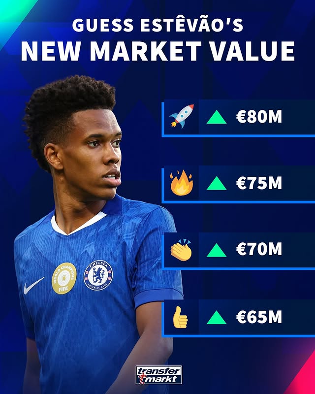 德转官方为即将到来的英超球员身价更新进行预热,图中显示埃斯特旺的最新身价至少为6500万欧,最高可达8000万欧元。