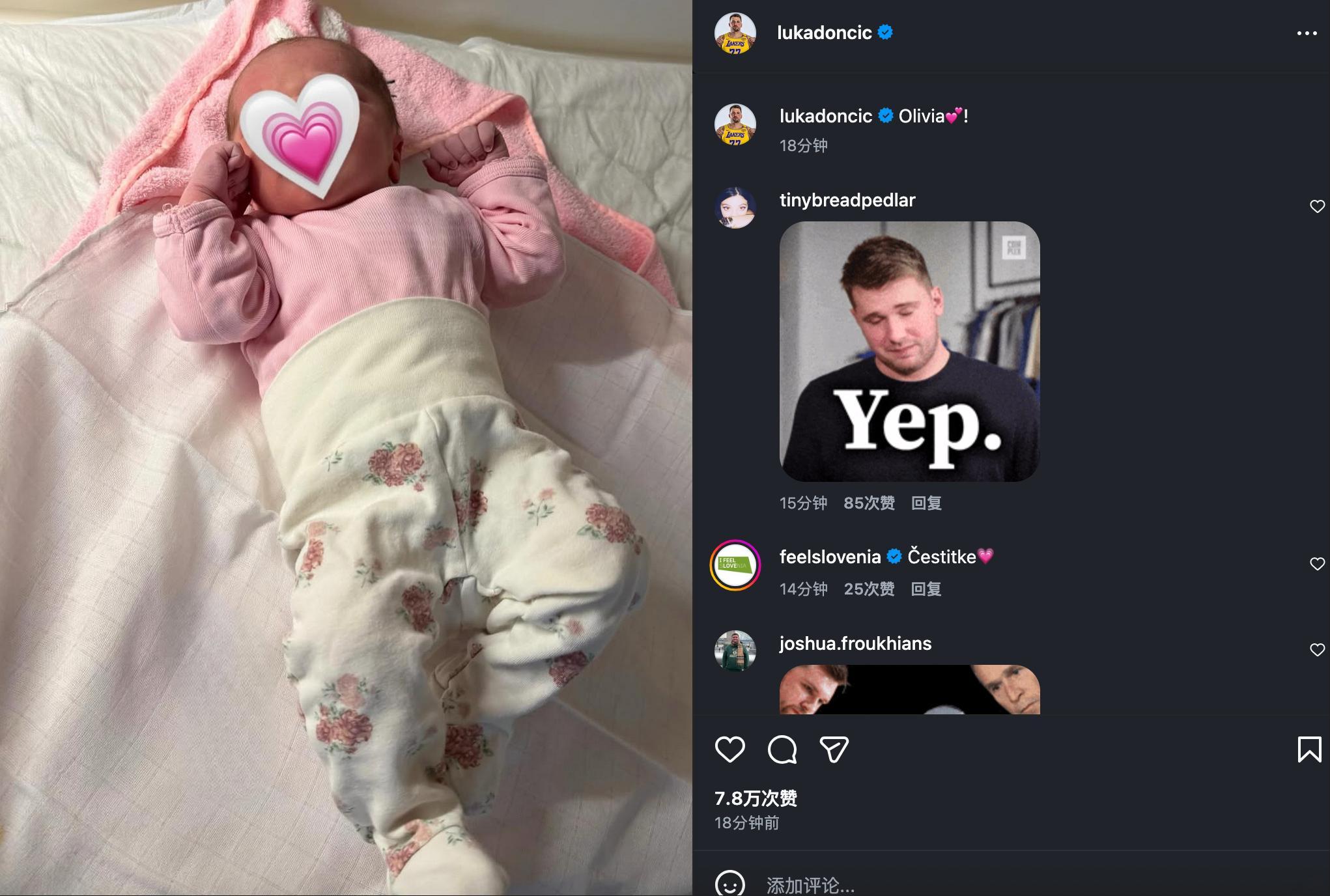 东契奇晒图二宝Olivia💕东契奇二胎得女 东契奇