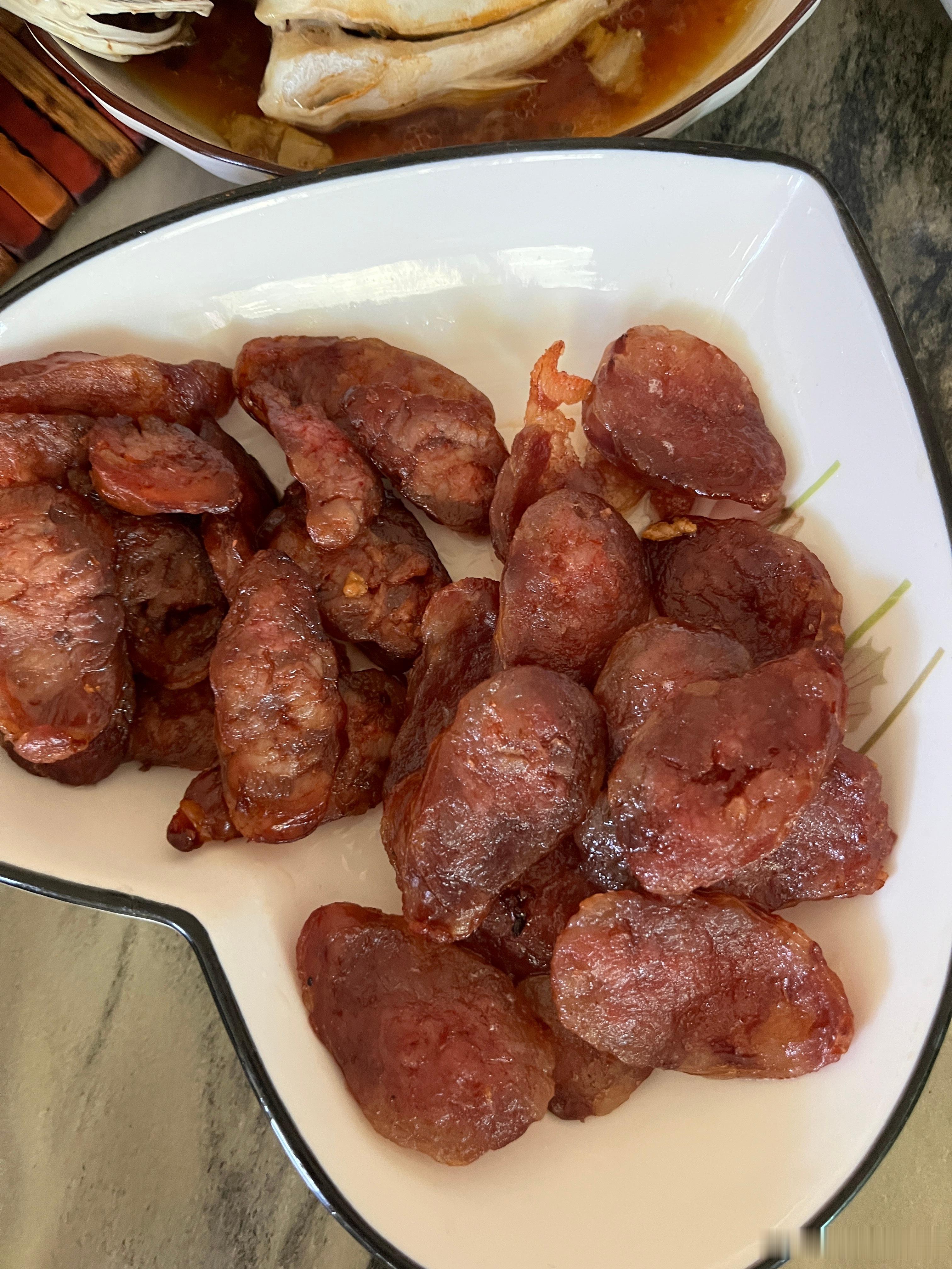今天偷吃了,吃了腊肠,带娃来爷爷这里,公公煮了好几个菜,没忍住,真的很好吃,好香