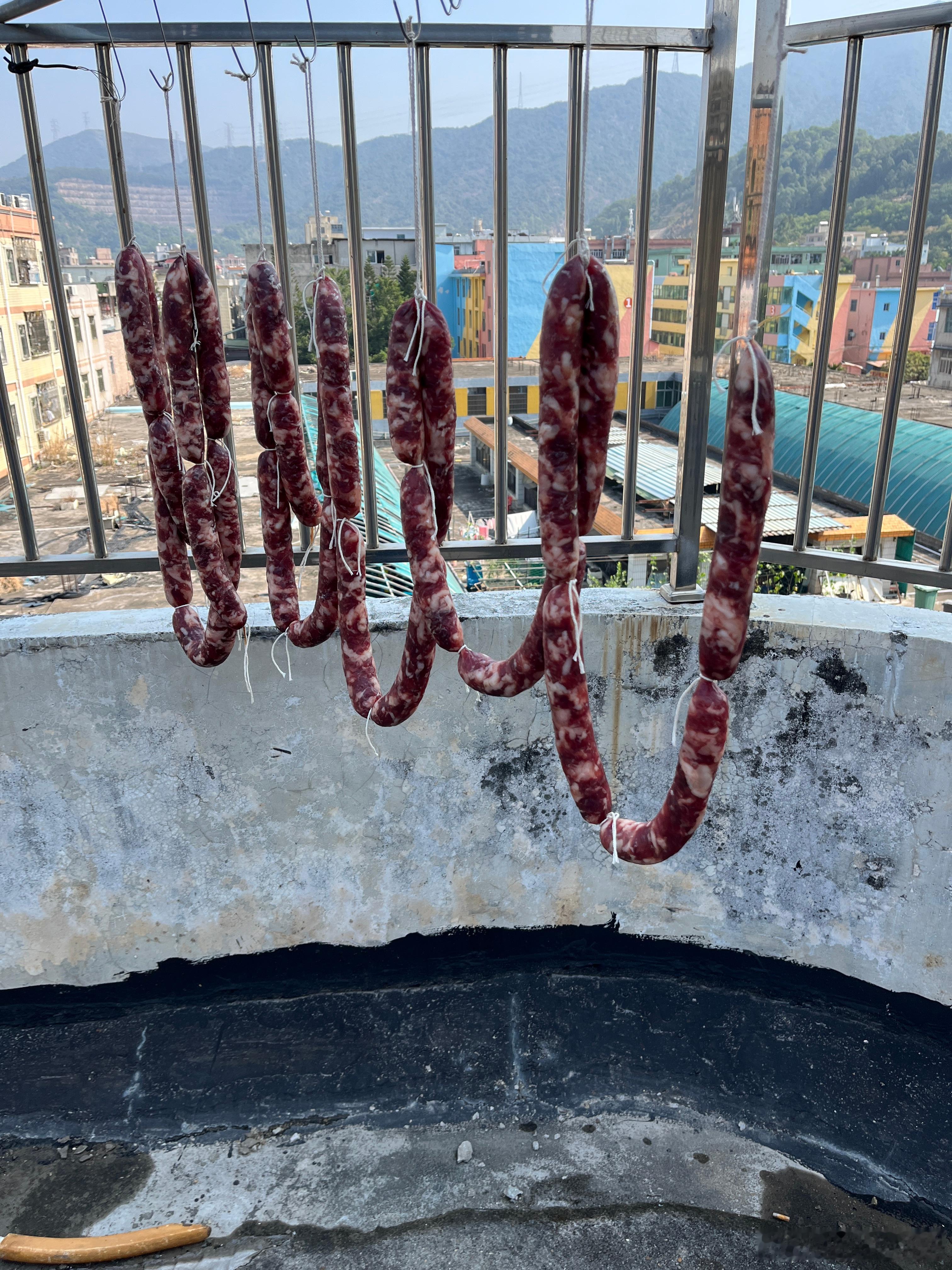 今天偷吃了,吃了腊肠,带娃来爷爷这里,公公煮了好几个菜,没忍住,真的很好吃,好香看看妯娌做的腊肠,人家买肉做腊肠,要帮忙晒干。娜扎姐姐颜值姐姐也是那么美。