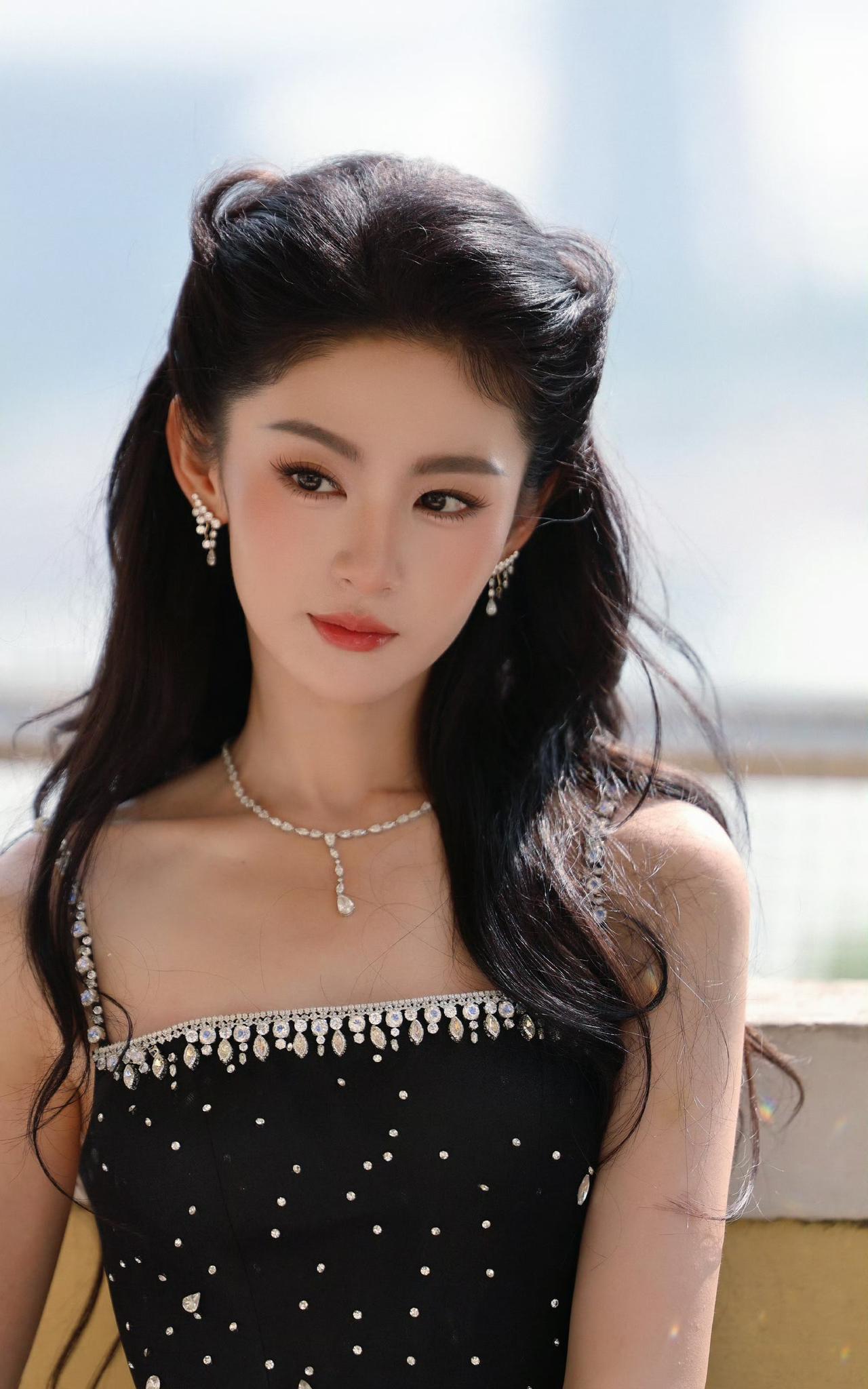 优雅黑裙,闪耀珠宝,沉思的美丽赵晴!!!!
