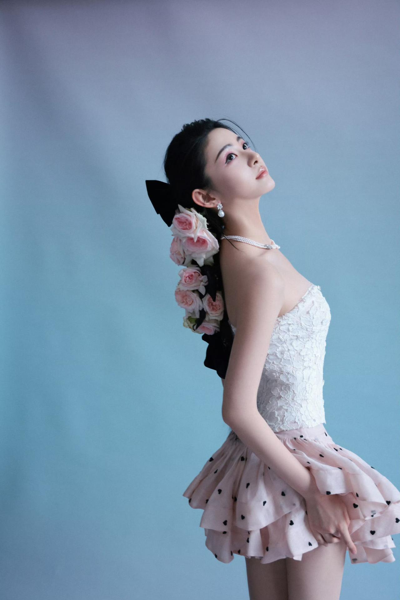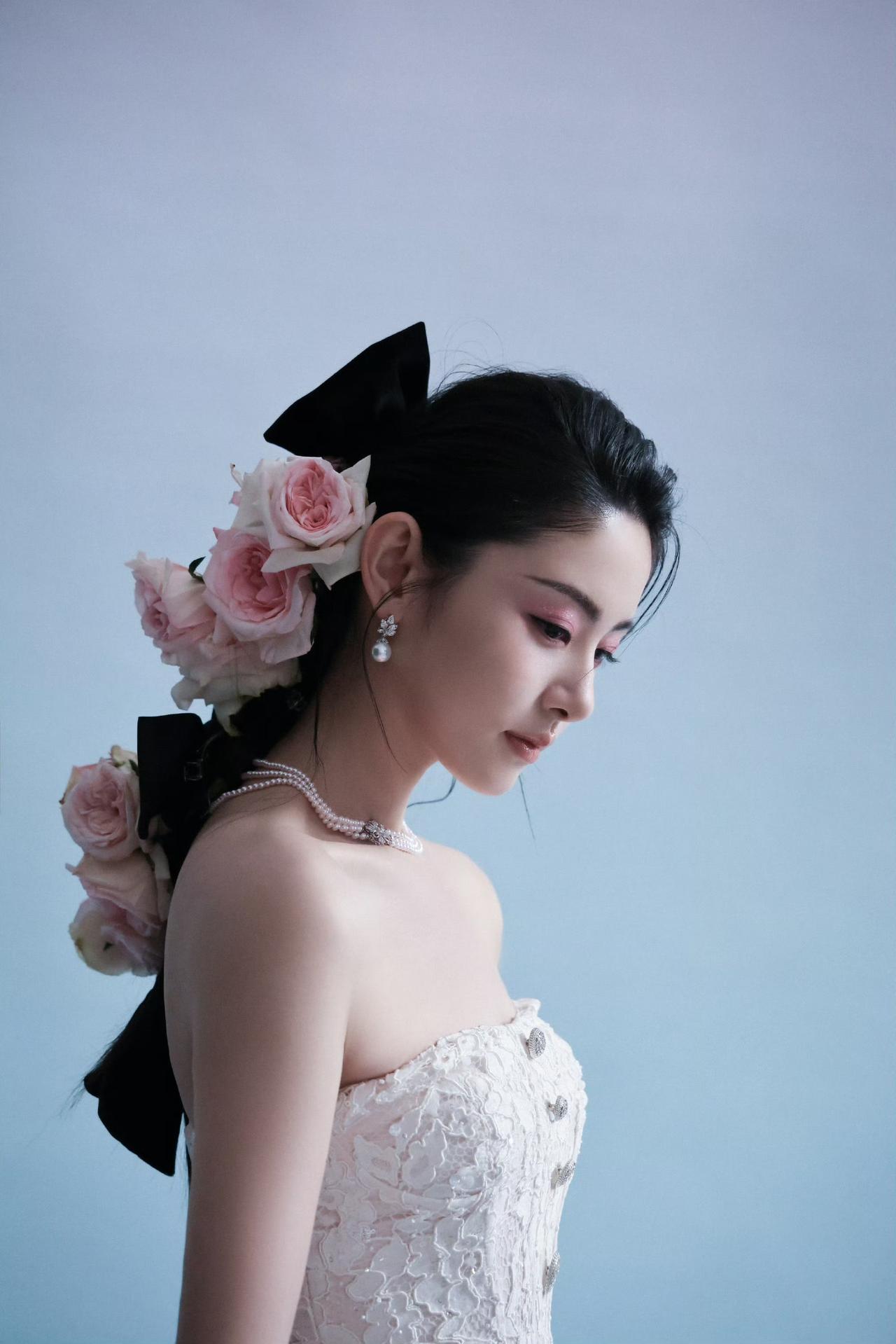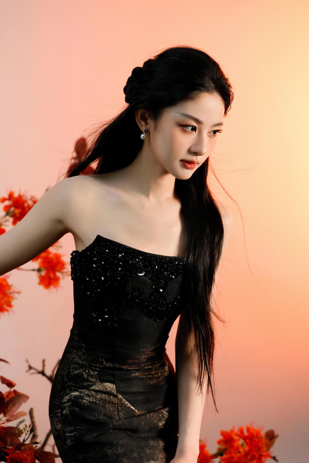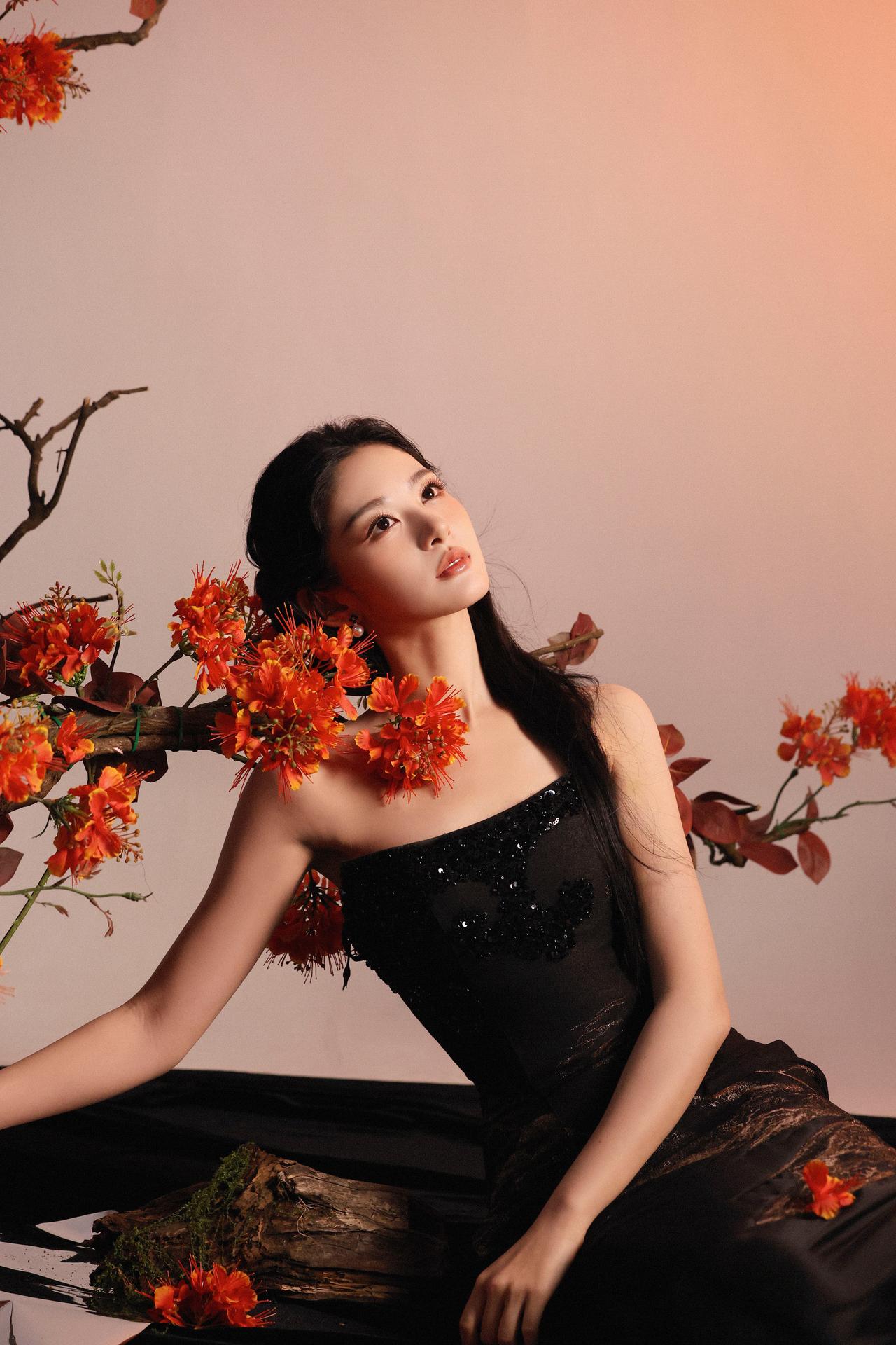 优雅黑裙穿搭,精致花艺背景,时尚感十足!