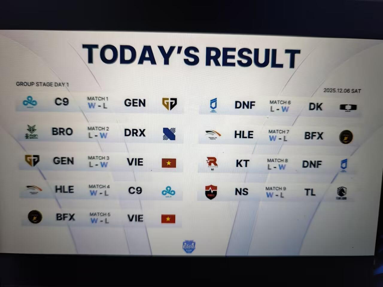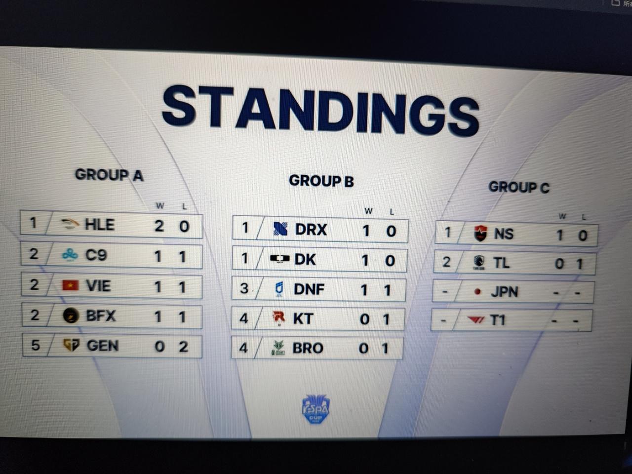 B组方面DRX和DK取得首胜,C组唯一一场比赛中NS一度落后七千的情况下大逆转击败北美TL拿到首胜。