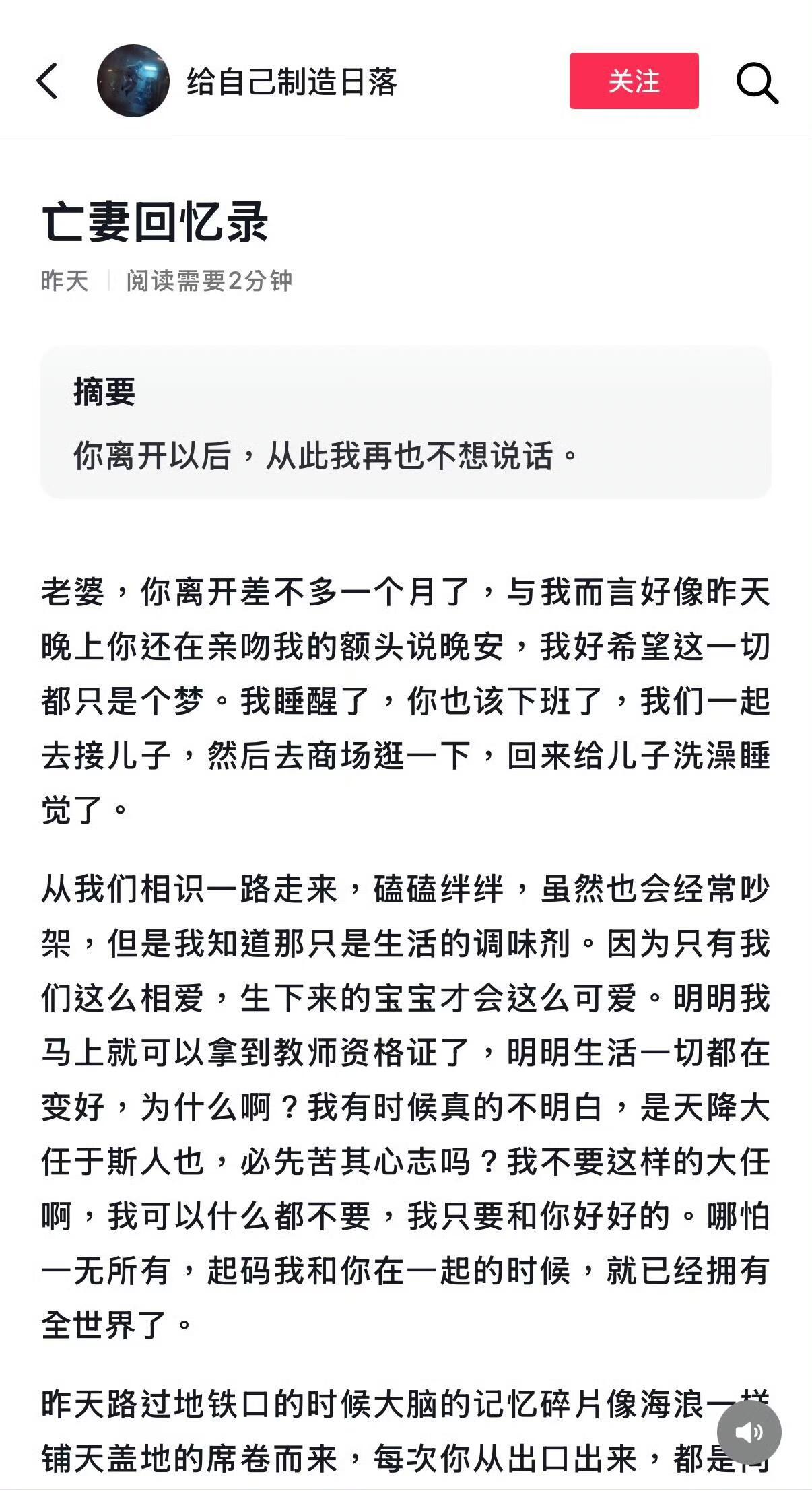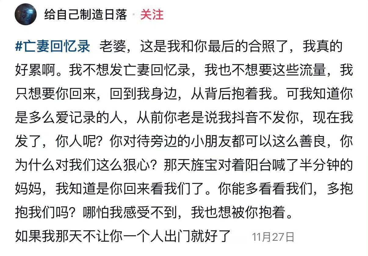 亡妻回忆录博主 出轨还以为真的会有这么深情的男人
