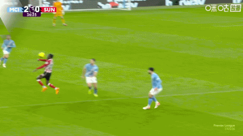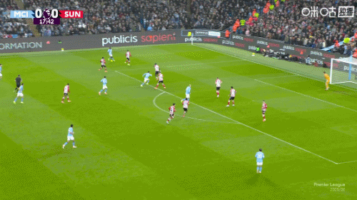 第18分钟,福登小角度似传似射,中路没有队友包抄。↓