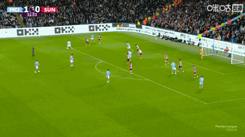伤停补时2分钟。上半场比赛结束,曼城2-0桑德兰。