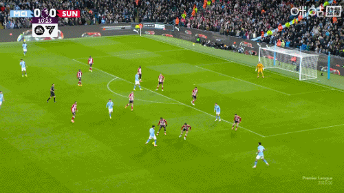 第31分钟,鲁本·迪亚斯外围重炮轰门,皮球如出膛炮弹轰进黑猫大门!1-0!曼城打破场上僵局!↓