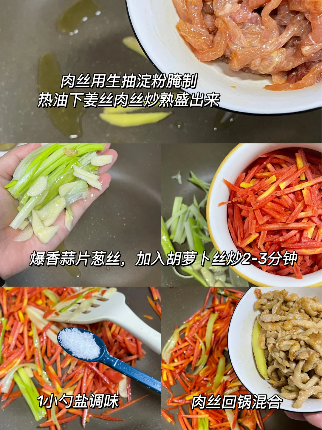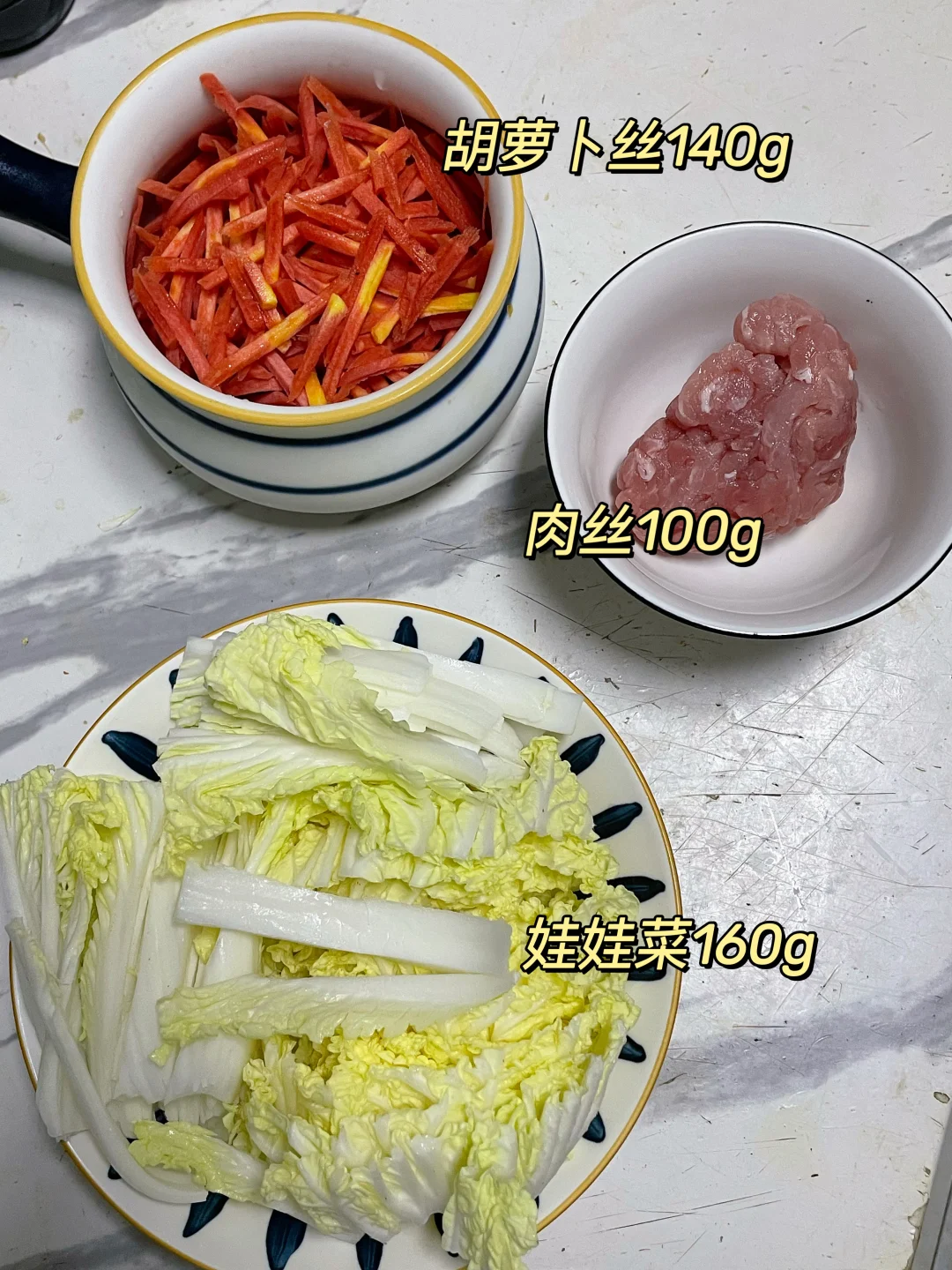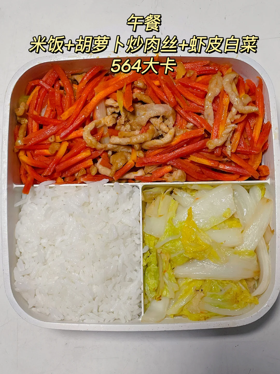 午 米饭+胡萝卜炒肉丝+虾皮娃娃菜