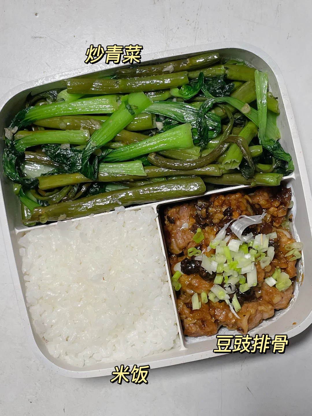 📍米饭+豆豉排骨+炒青菜