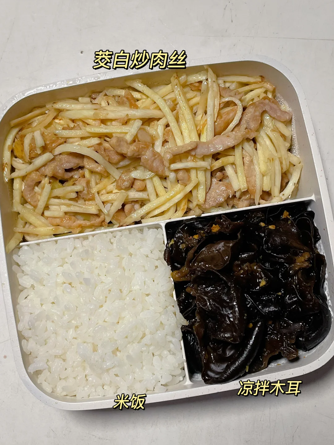 📍米饭+茭白肉丝+拌木耳