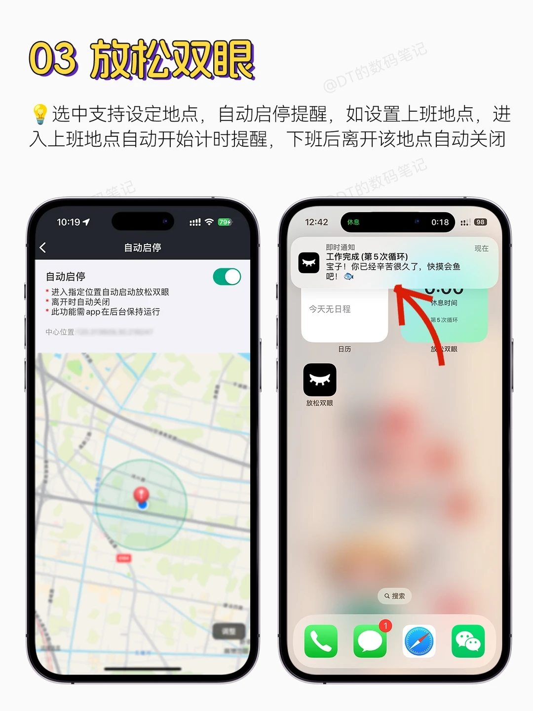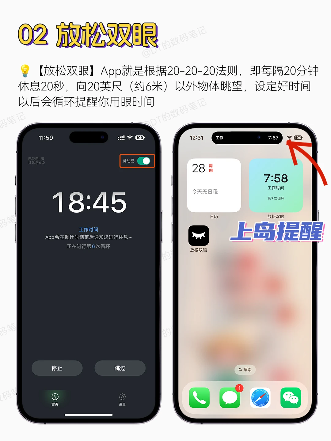 为了预防,我特意安装了橘汁科技的【放松双眼】App,他就是根据20-20-20法则,即每隔20分钟休息20秒,向20英尺(约6米)以外物体眺望,设定好时间以后会循环提醒你用眼时间,真的很棒~