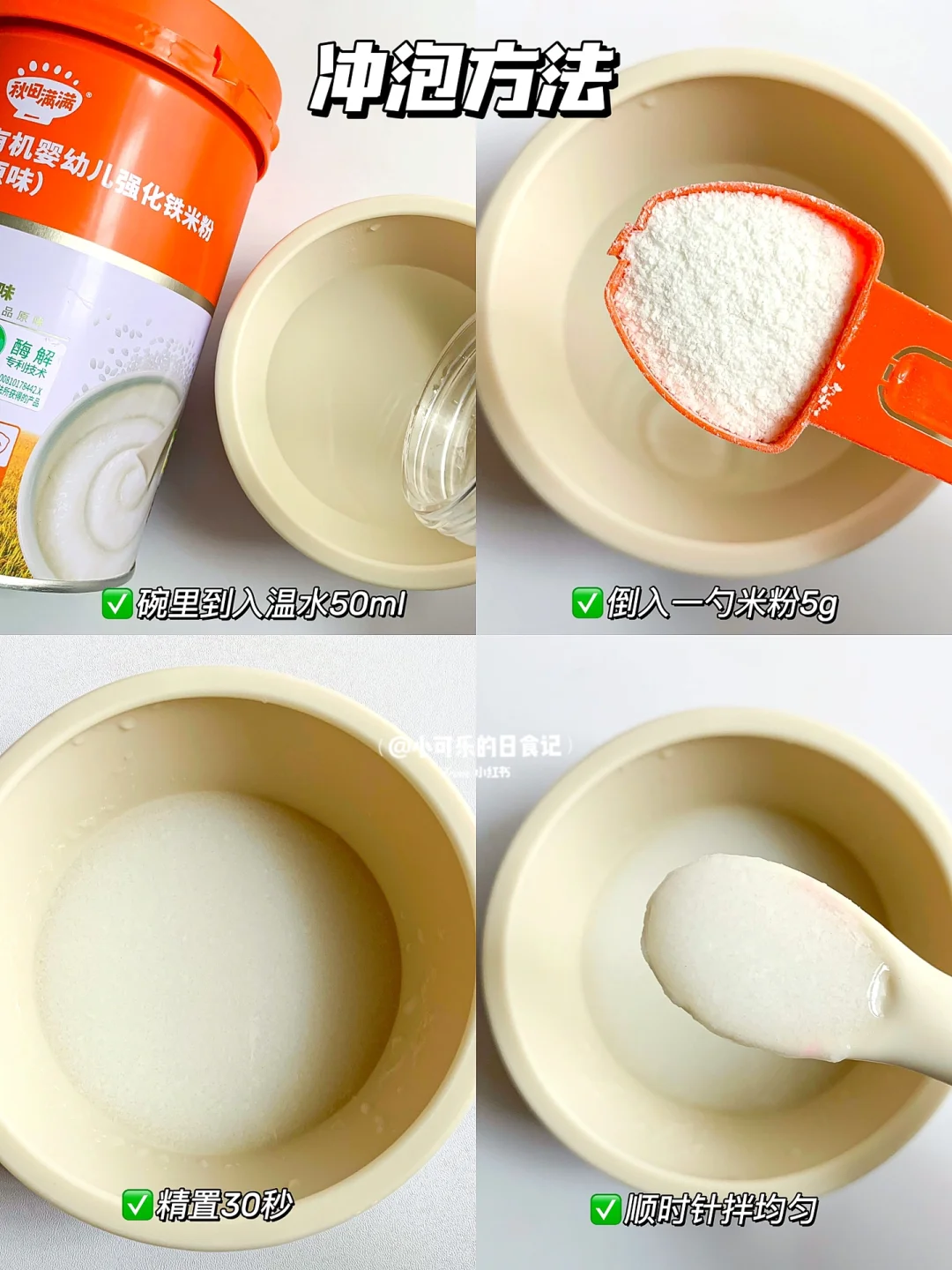 用的是秋田满满Vc加铁有机米粉,铁含量高,能够满足宝宝日常铁的含量需求,合适初添加辅食的宝宝,而且配料表干净,粉质细腻,很好冲泡,新手妈妈也能轻松搞定