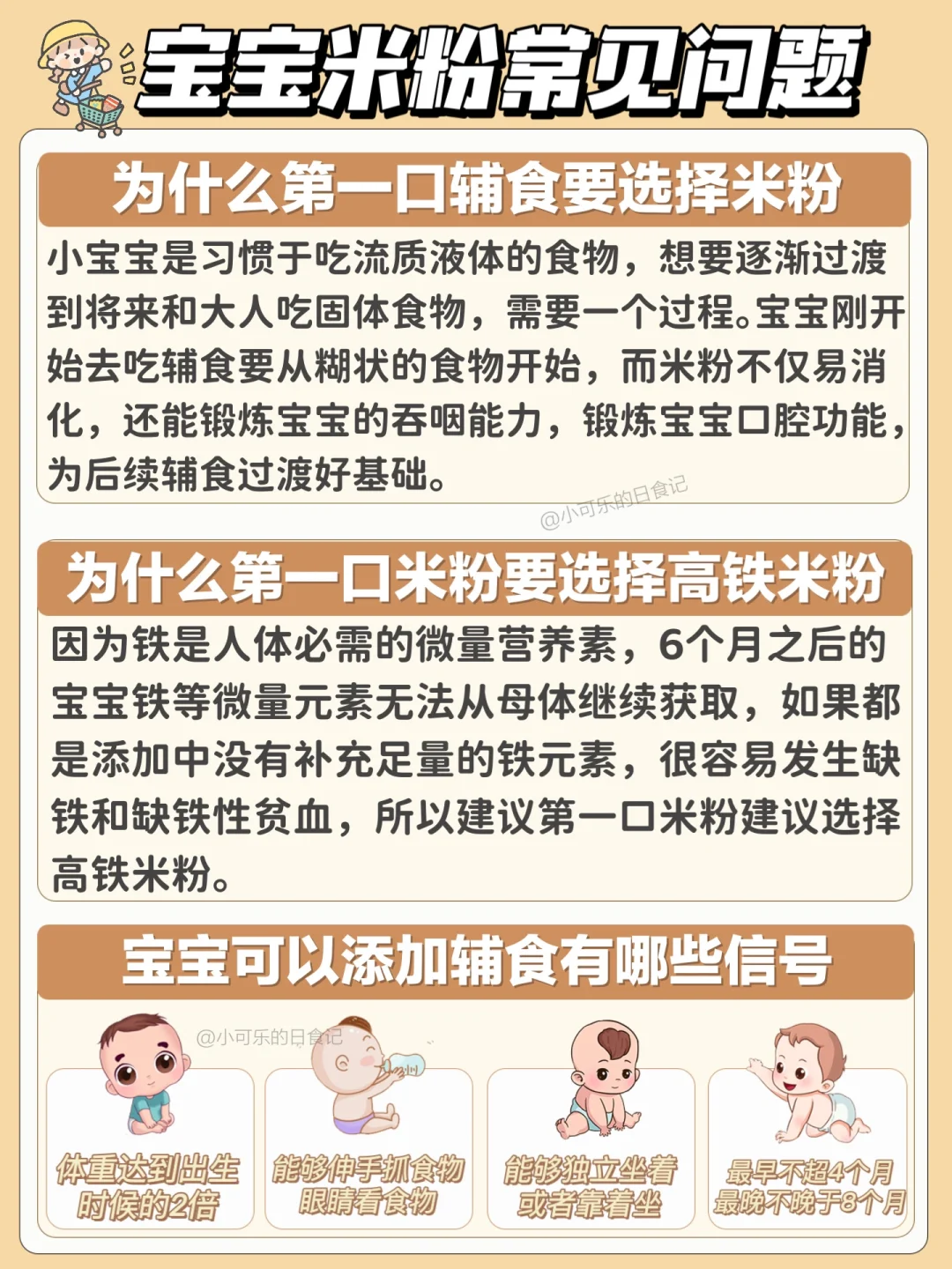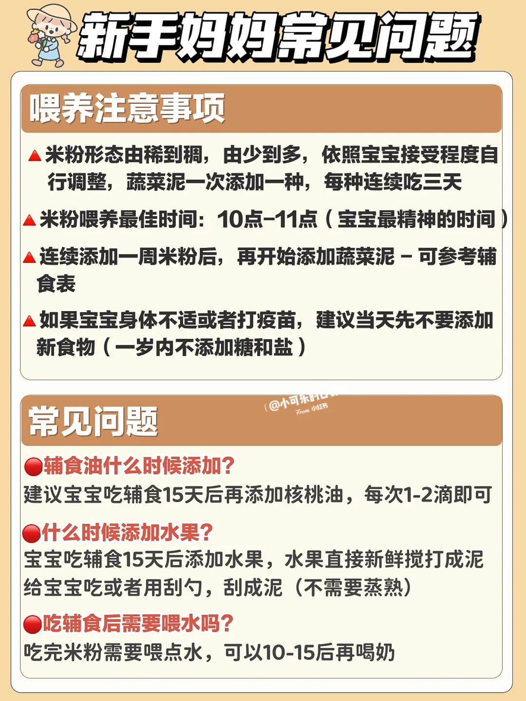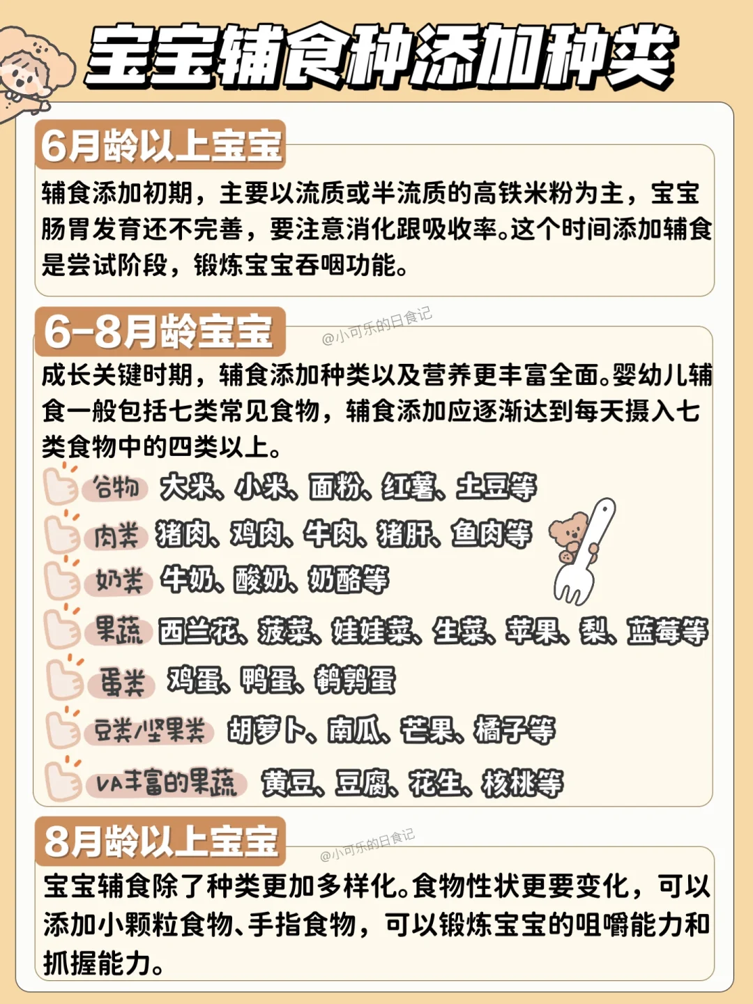 ⏰辅食添加时间:不早于4个月,不晚于8个月,一般建议满6个月。