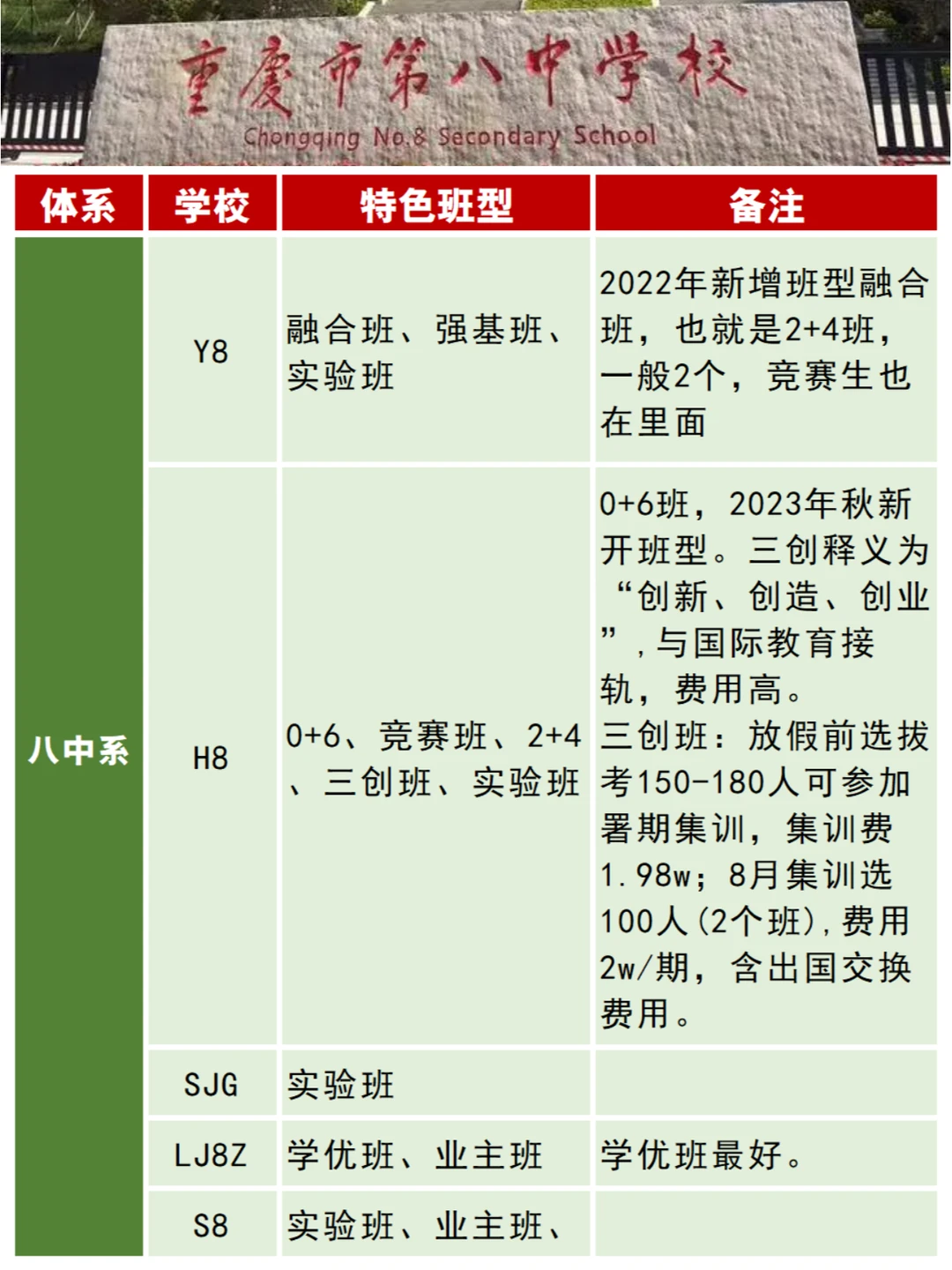 🌵✅“2+4”:宏八首创,即2年初中4年高中,有效的降低了中考的压力。目前重庆众多学校都有2+4学制,只不过名称不一,这些名为融合班、基科班、广延班、励新班、卓越班、强基班都是2+4;